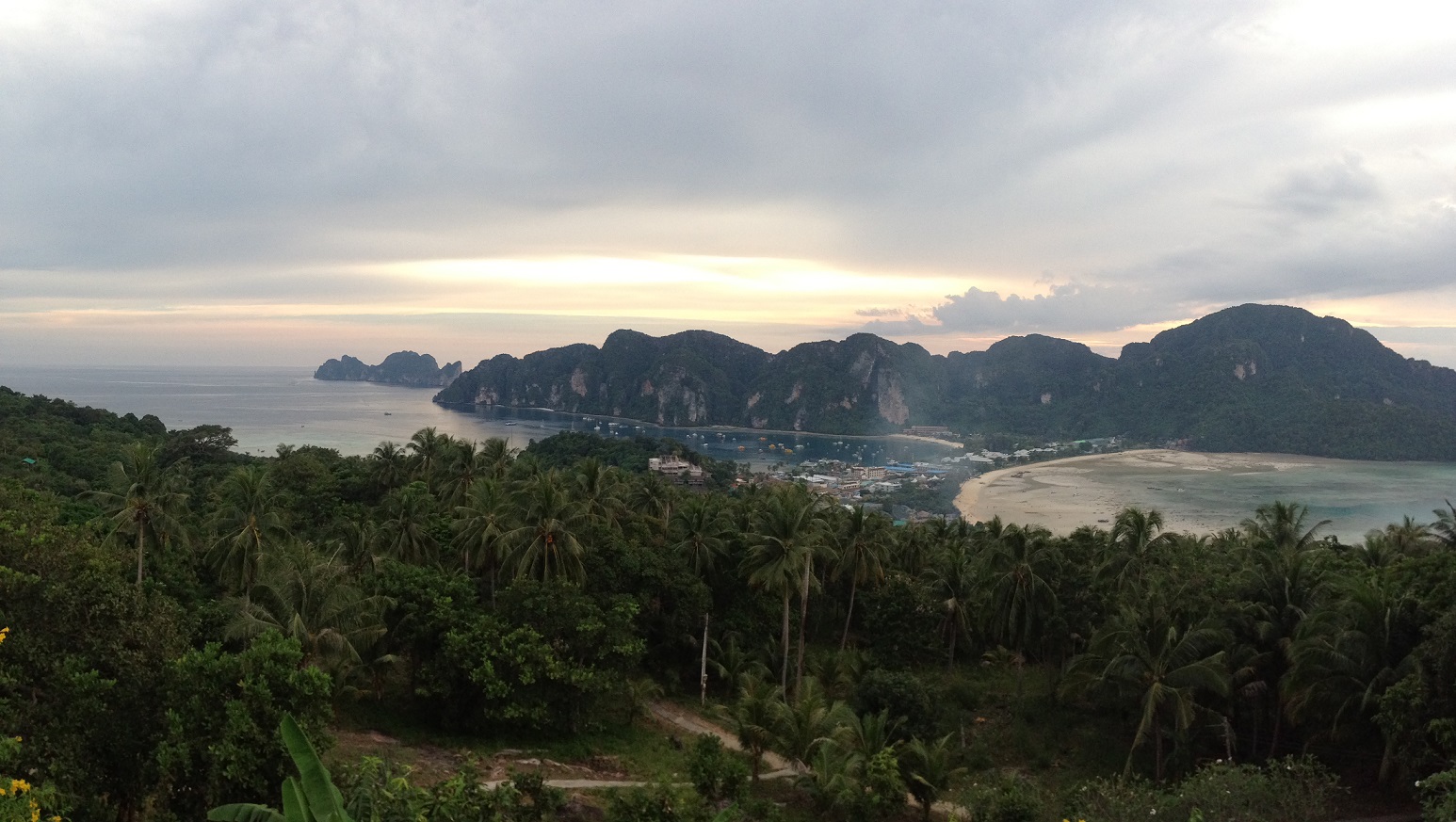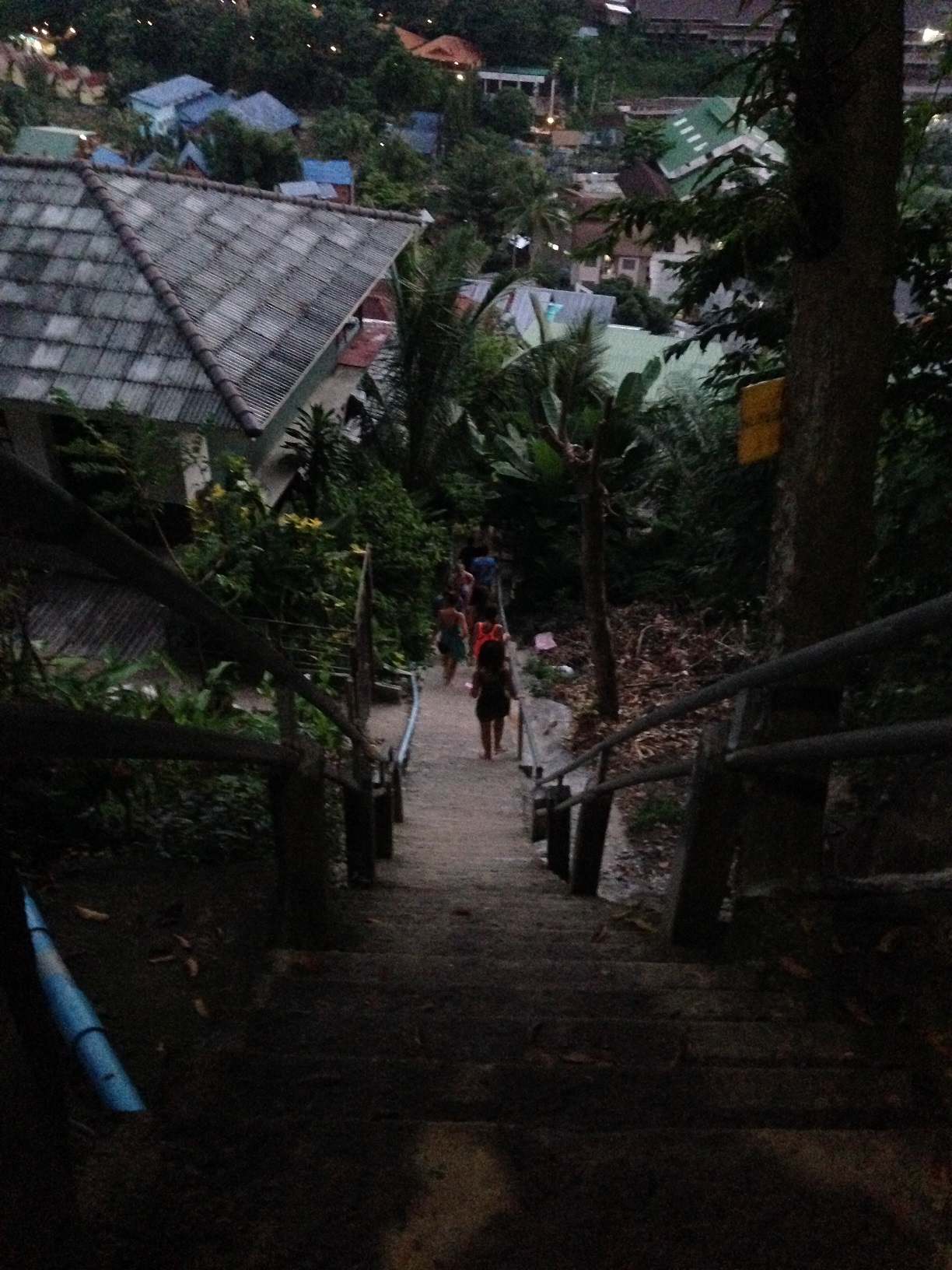 O dia deu uma nublada, então resolvemos dar uma caminhada até o View point. Se você seguir reto na calçada principal, é só seguir as placas. Meu deus, que role é aquele??? Uma escadaria sem fim e naquele calor; quando finalmente chegamos até a entrada, tinha que pagar 30 bahts por pessoa para entrar – e ainda subir mais algumas rampas super íngremes até o topo. A gente penou bastante pra subir, mesmo porque não somos nem um pouco atletas. Mas quando chegamos lá, compensou todo o esforço. o local onde ficamos para sentar e apreciar a vista é muito fofo, e a vista é animal; dava para ver os dois lados da ilha (o pier e a praia).