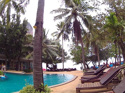 Super Recomendo. Fica à beira-mar, piscina com borda infinita. Quarto um pouco antigo com cheiro de mofo, porém é bem bonito. Fica do lado mais bonito de Railay, e ao mesmo tempo é bem próximo dos bares e restaurantes. O café-da-manhá é bem completo e no quarto tem frigobar disponível.