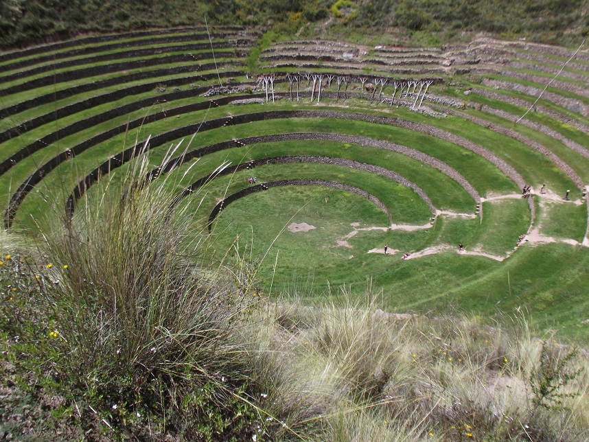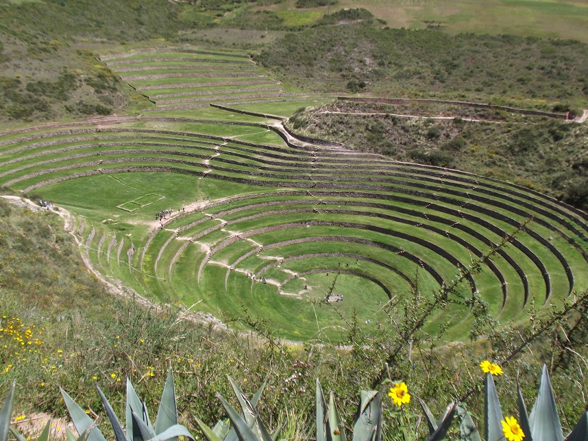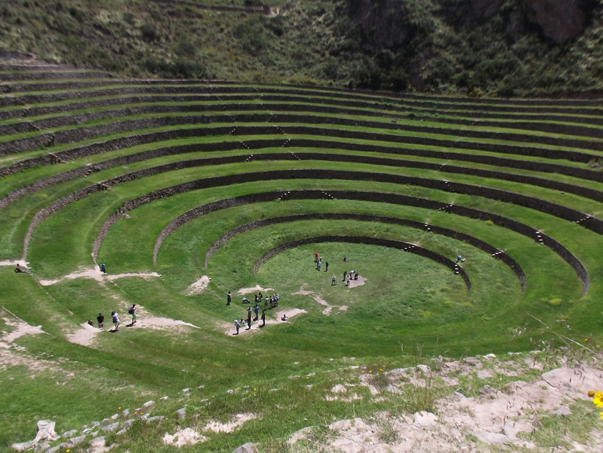 Fizemos novamente a parada em Chinchero, depois seguimos para Moray. Moray é um antigo laboratório de estudo de agricultura; os Incas simulavam altitudes distintas, excesso ou falta de água para uma mesma cultura (normalmente batata, choclo e quinua). É de cair o queixo, vale muito a pena conhecer.