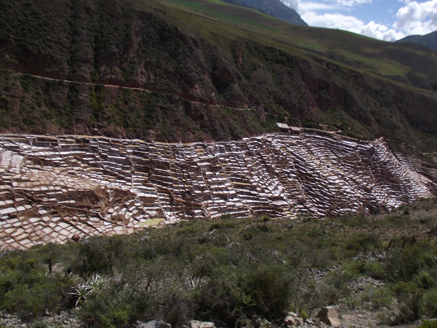 Depois seguimos para Maras, uma salineira. O grande diferencial é que a água sai da montanha, com muito, mas muito sal! Muito legal também. Dizem que antigamente, cada família era dona de um dos cercados de sal da montanha – famílias pobres eram proprietárias dos menores, enquanto os maiores pertenciam à famílias mais ricas.