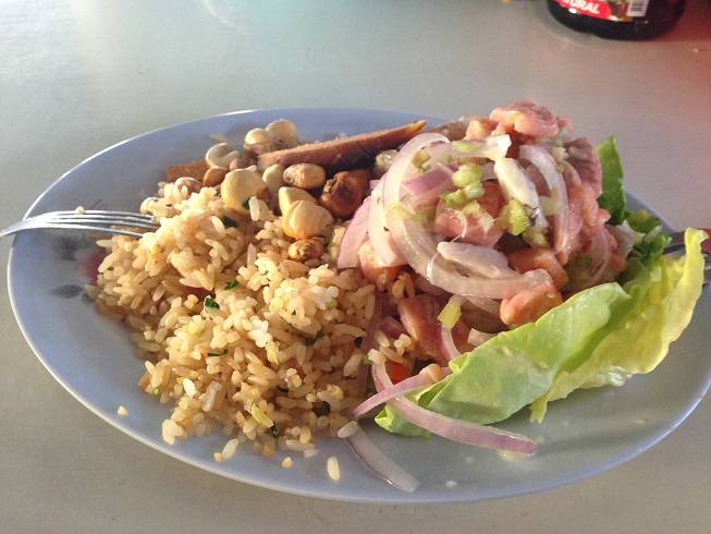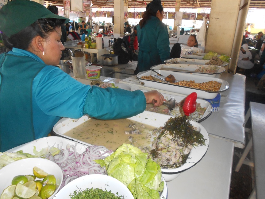 Voltamos cedo, chegamos em Cusco por volta das 14h30. Queríamos comer Ceviche que até então não tivemos a oportunidade de experimentar (todos os lugares que encontramos ofereciam o Ceviche por preços abusivos). O Jose, do hostel, nos indicou comer (sem preconceito na mente) no Mercado de San Pedro.