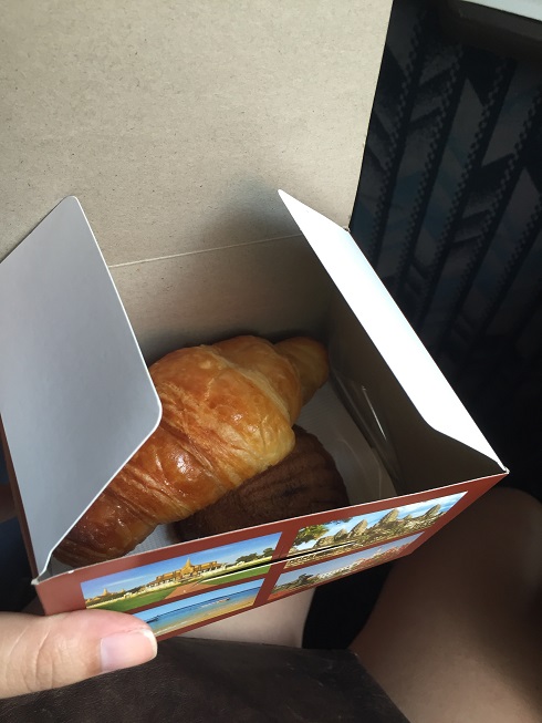 A primeira parte da viagem, que leva até à fronteira do Camboja com o Vietnã dura 3 horas e pouco. A estrada é praticamente sem curvas, mas o ônibus era meio antigo, então todo buraco que passava, ele quase desmontava. Eles fazem uma parada em um restaurante a 2 minutos da fronteira de saída do Camboja. Você tem 20 minutos para usar o banheiro e comer alguma coisa (eu não sou nem um pouco fresca, mas não tive coragem de arriscar, já que tinha mais 3 horas de viagem).