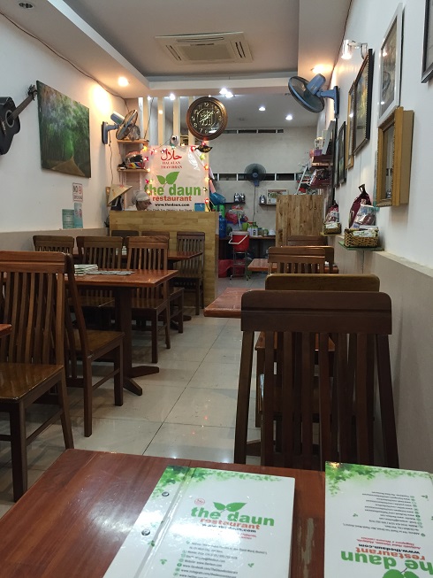 A localização do hotel é muito boa pois fica a 15 minutos dos pontos turísticos, e nas redondezas tem bastante restaurantes (obrigada, Tripadvisor!). Optei por jantar no Daun Restaurant. O restaurante era bem pequeno, mas muito acolhedor e o proprietário me recebeu muito bem. Era tudo muito limpo, e os pratos era pouquíssimo mais caros que na rua – valeu muito a pena! Só não foi perfeito pois o meu prato veio cheio de pimenta do reino, enquanto eu tinha pedido para não colocar nenhuma pimenta. [Aqui vale uma dica: em muitos lugares, pimenta do reino é considerada um tempero, e não pimenta. Por isso vale especificar que você não quer pimenta, e nem black pepper.]