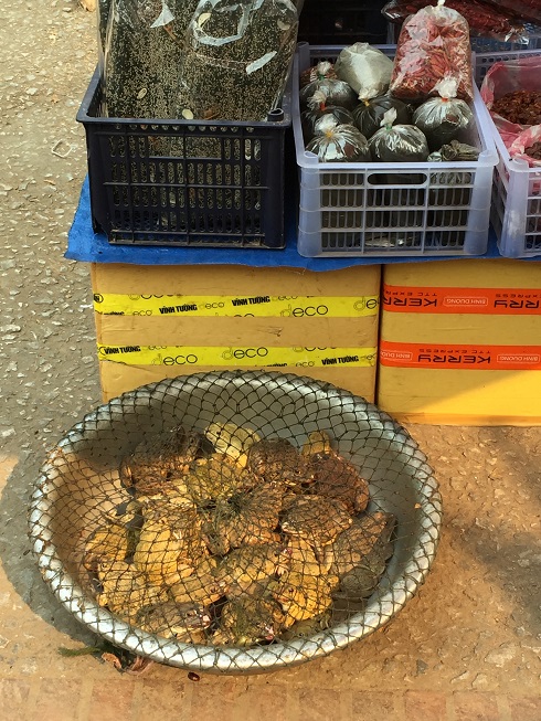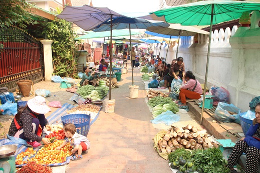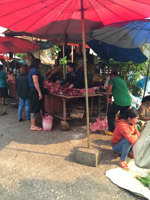 Acordei cedo e tomei café. O rapaz da recepção me deu um mapa e me mostrou alguns pontos principais da cidade. Saí para tirar dinheiro, e dei uma caminhada nos arredores. O rio Mekong fica pertinho do hotel e é enorme! Também andei pela feira diurna – é um pouco pitoresco. De frutas e legumes, até galinhas e sapos vivos, e pedaços de carne de animais quase que inteiros.