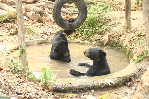 A cachoeira abre as 10 horas da manhã, e o quanto antes você for, menos gente pra competir com a paisagem! A van me buscou 11h30, e por volta das 12h30 estávamos no parque. Logo de cara já estão os ursos pretos resgatados da exploração; eles possuem uma glândula que produz uma substância que vai em vários medicamentos. É triste vê-los no zoológico, mas mais triste ainda seria deixá-los por 10 anos em uma gaiola minúscula sendo explorados. Eles são extremamente dóceis, então muitos deles são recapturados pelos caçadores, e resgatados novamente pelo projeto de proteção.