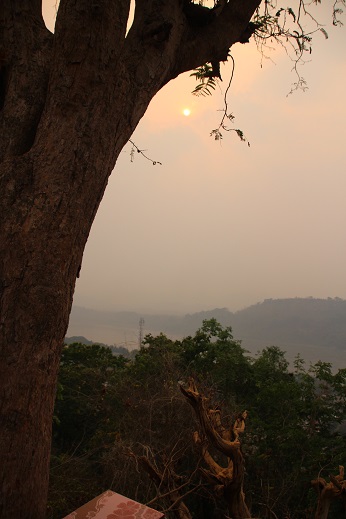 O tempo estava meio nublado, o que arruinaria boa parte da minha subida ao Mont Phousy – a idéia era assistir o pôr-do-sol. De qualquer maneira, subi os aproximados 300 degraus, que foram até fáceis perto da subida do Viewpoint de Phi Phi, na Tailândia. Estava vazio a hora que eu cheguei, então escolhi um cantinho e fiquei sentada esperando o sol dar as caras. E o resultado foi esse!