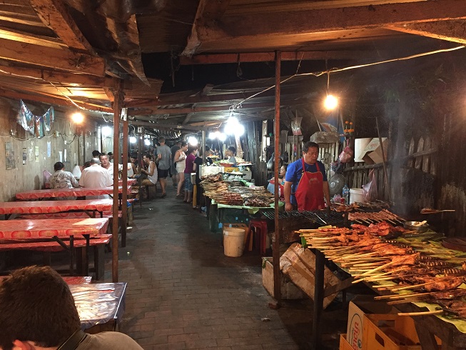 Voltei para o hotel e tomei um banho. Logo saí para experimentar comida local em uma barraquinha de Buffet na rua. Estava bem gostoso.