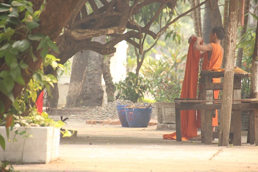 Acordei cedo para chegar no Wat Xieng Thong (o principal templo de Luang Prabang) antes da multidão de turistas. E deu certo! Apesar de que ir cedo demais também é arriscado – pois as pessoas que ficam para a Ronda das Almas (doação de comida aos monges) acabam emendando a visita ao templo – das 7 às 9 horas da manhã o templo ficou bem vazio. Meu hotel ficava um pouco longe, então caminhei 1,1 km na beira do rio Mekong até o destino final.