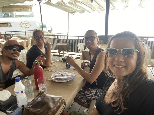 Andando para o lado direito da praia nós encontramos o Flutuante Marola aberto. Tomamos uma cerveja bem gelada e aproveitamos a vista enquanto esperávamos pelo almoço.