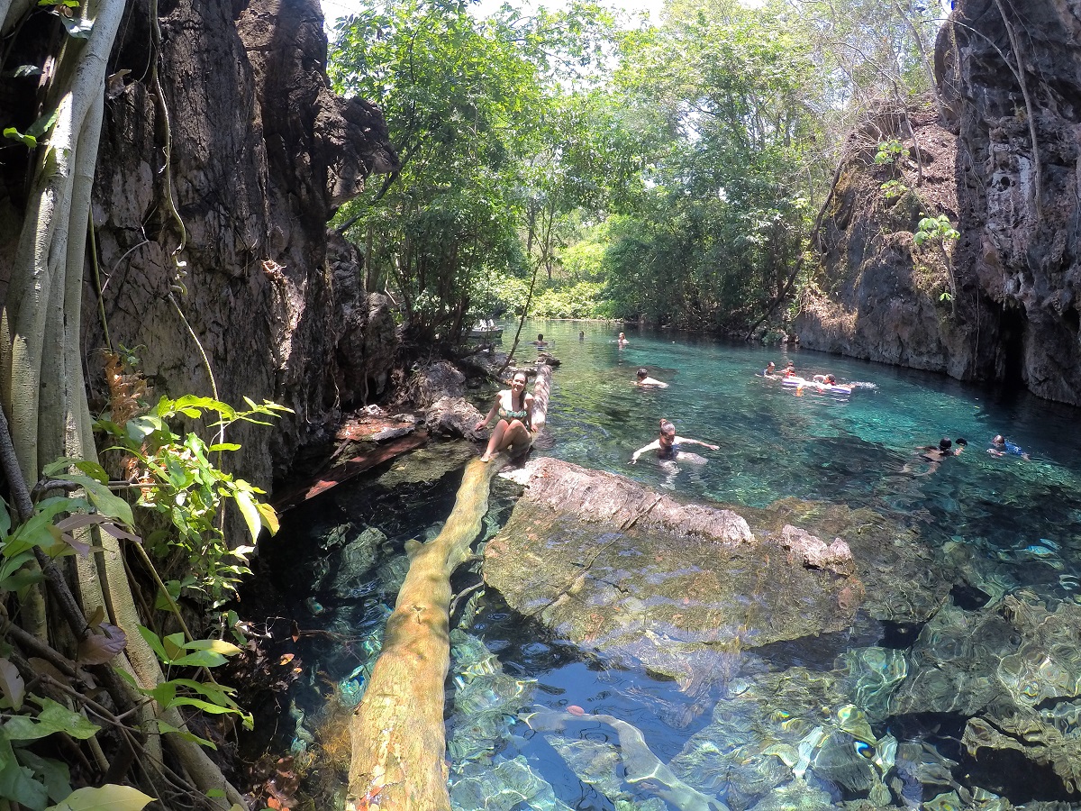 Enquanto a gente explorava o interior da caverna, minha síndrome de blogueira fez com que eu tivesse a brilhante ideia de fazer um vídeo mergulhando e saindo da caverna…o vídeo ficou bacana, mas durante toda a viagem carreguei uma cicatriz enorme na testa hahaha.