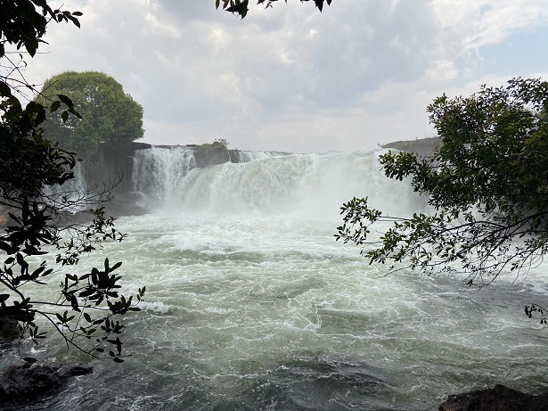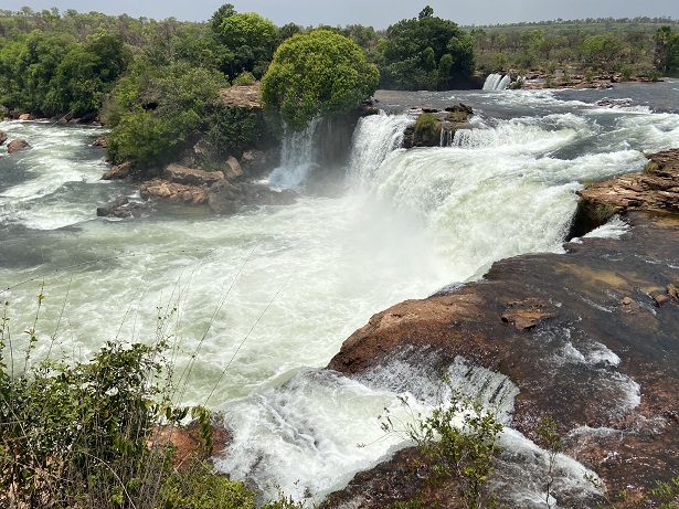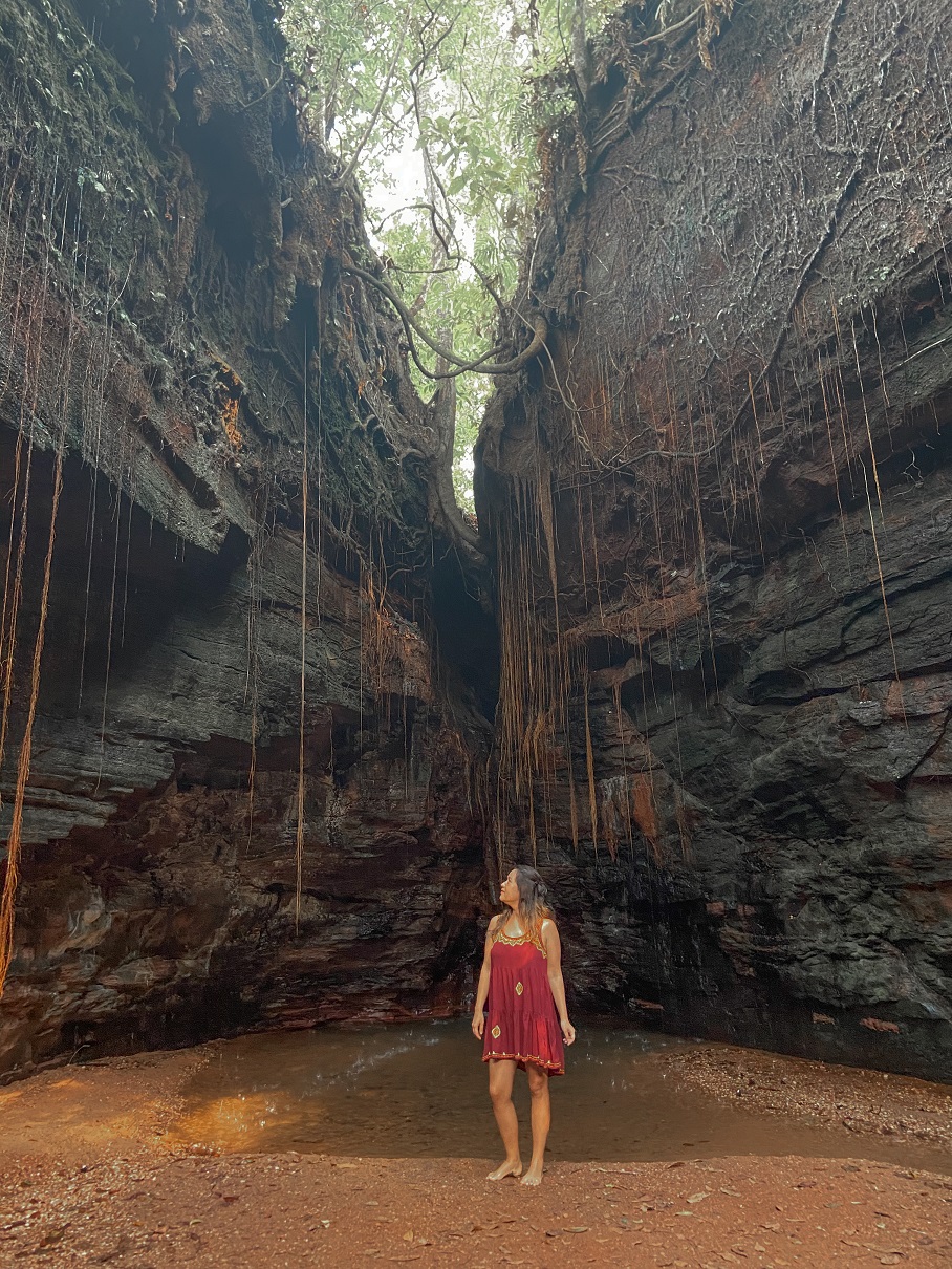 Voltamos para o carro, e em alguns minutos chegamos na Cachoeira da Velha, que fica pertinho da prainha. Apesar do calor, não é possível entrar na cachoeira devido a força da água.