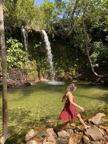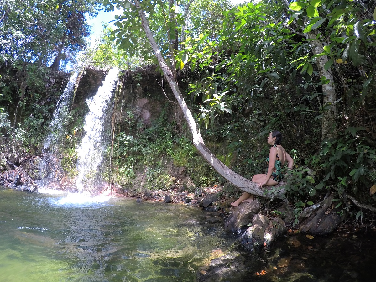 Percorridos por volta de 20km, nós chegamos na Cachoeira das Araras. A trilha é curtinha, e conseguimos aproveitar uns 20 minutinhos só pra gente. Mais uma vez meu espírito de blogueira me presenteou com lembranças marcantes do Jalapão (vide post da Lagoa do Japonês rs), e enquanto eu fazia pose para tirar uma foto sentada na árvore, fui atacada por várias formigas que aparentemente não ficaram muito contentes comigo sentada no “tronco delas”! Ardeu horrores…então fica aí a dica de tomar cuidado com o lugar onde você senta rsrs