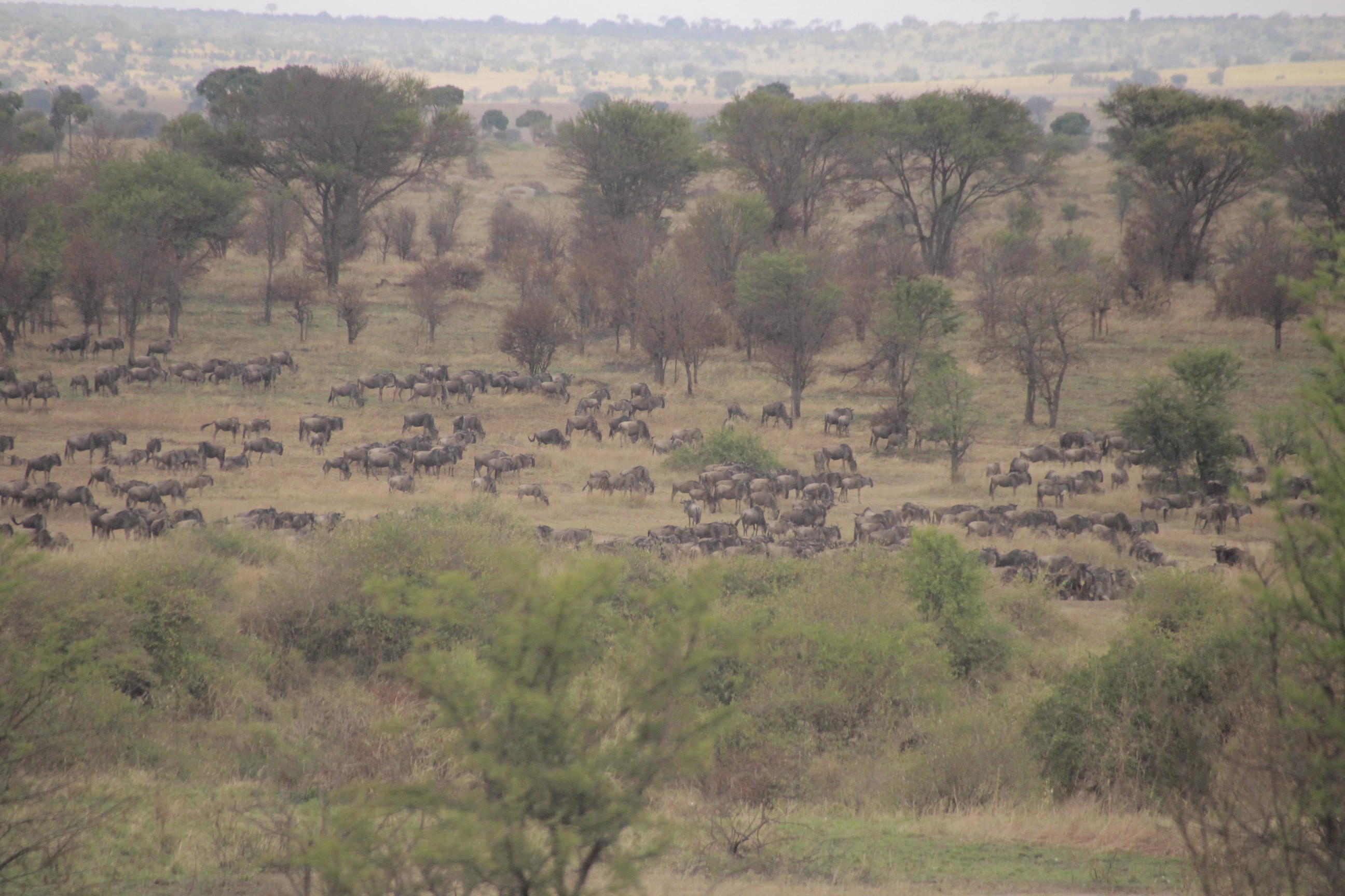 Nosso principal objetivo era conhecer o Parque Nacional do Serengeti, onde acontece a Grande Migração: aproximadamente 2 milhões de gnus circulam o parque em sentido horário acompanhando as chuvas, sempre em busca de vegetação verde para se alimentar. Entre os meses de Janeiro e Março eles estão no sul do parque, momento em que nascem os filhotes. Entre os meses de Julho e Setembro, os gnus se concentram no norte do parque, para atravessar o Rio Mara e continuar a migração pelo Quênia (onde o parque muda de nome para Masai Mara) e neste momento, enfrentam os crocodilos e leões que se concentram nessa região.