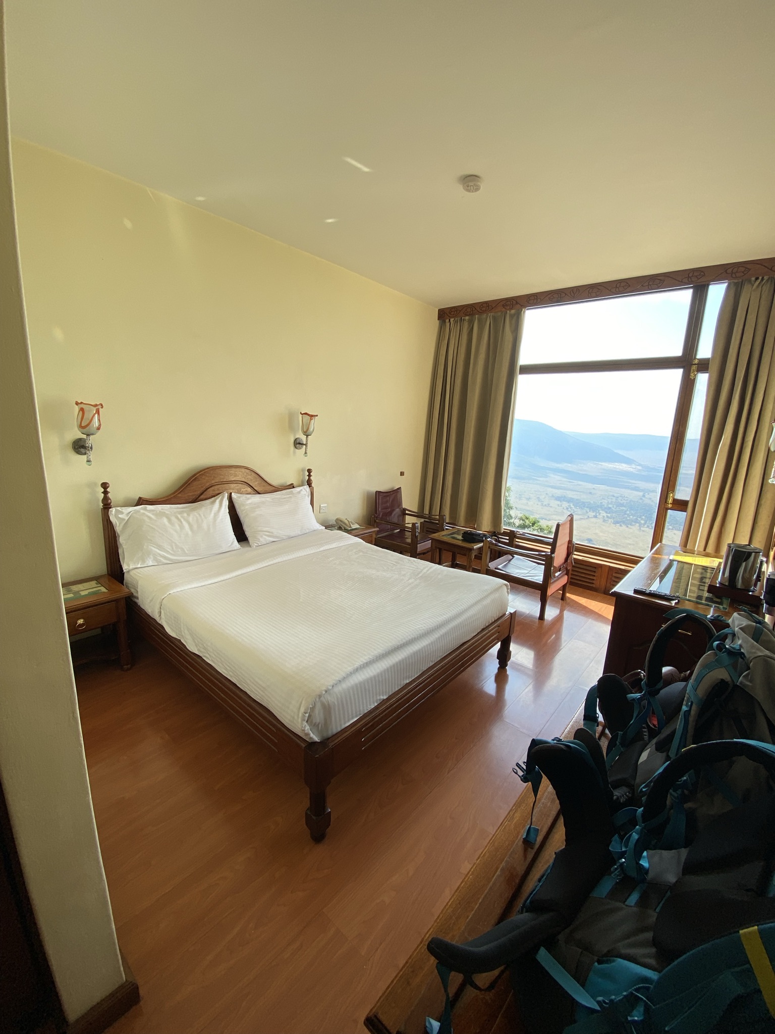 Chegamos no Ngorongoro Wildlife Lodge por volta das 16:00. Aproveitamos que ainda era cedo para aproveitar a vista desse hotel, que fica no topo da cratera de Ngorongoro.