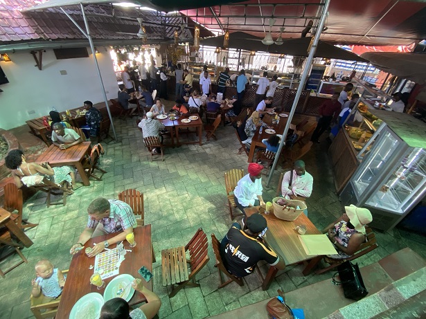 Acordamos bem cedo para ver o nascer do sol. Tomamos café, fizemos o check-out às 8:40 e esperamos o táxi. Saímos às 9 da manhã, e por volta das 10 horas chegamos em Stone Town. Nossa ideia era ir direto para o hospital fazer nosso PCR, porém preferimos ir para o hotel primeiro, o Tembo Palace Hotel, para deixar as malas pois estava chovendo.