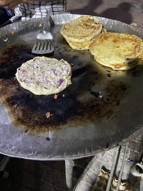 No final da tarde desse dia nós saímos para caminhar pelo bairro, e paramos para tomar uma cerveja e um gin no Zenj, que fica atrás da mesquita. Saindo de lá fomos novamente até o Night Market para experimentar outras comidas locais… eu comi uma pizza super diferente e o Felipe comeu um swarma – tudo estava muito bom.