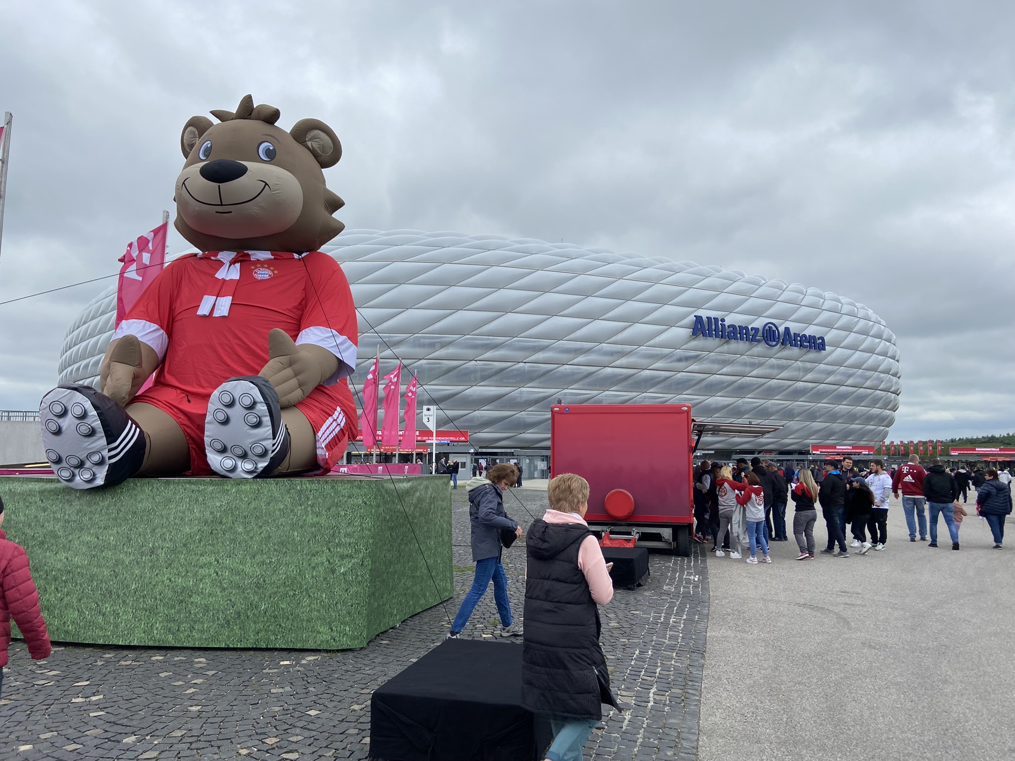 Tomamos o café-da-manhã meio tarde no hotel, passamos no mercado para comprar água e seguimos para o jogo de futebol: Bayern de Munich x Schalke, pela Bundesliga 22/23.