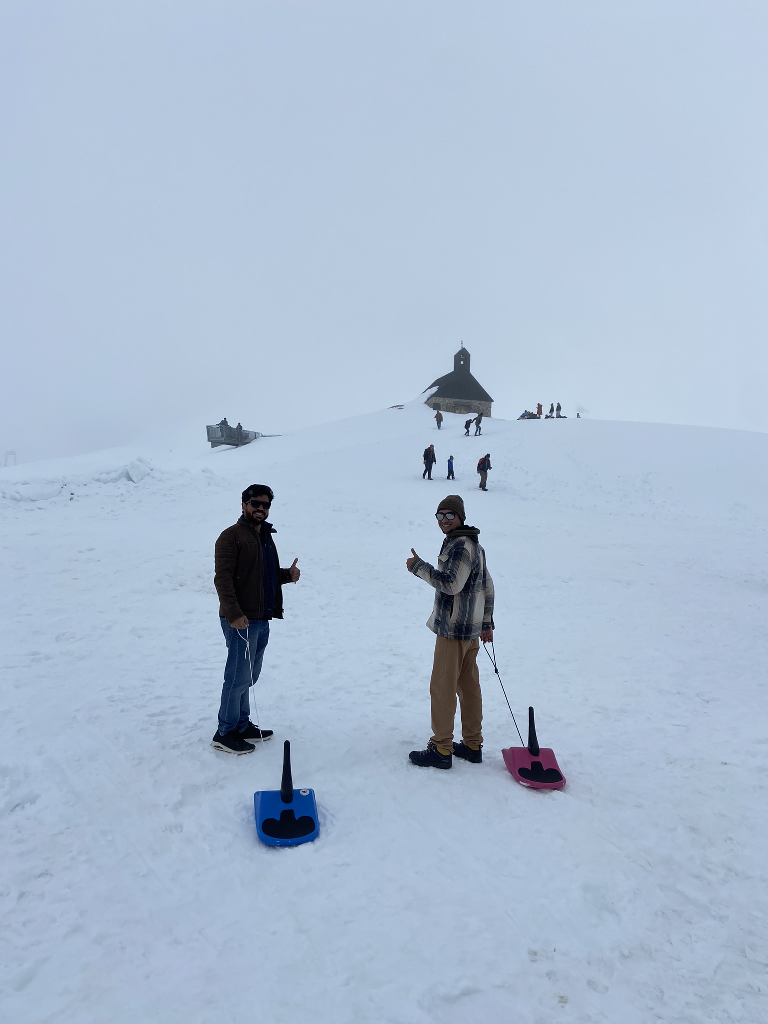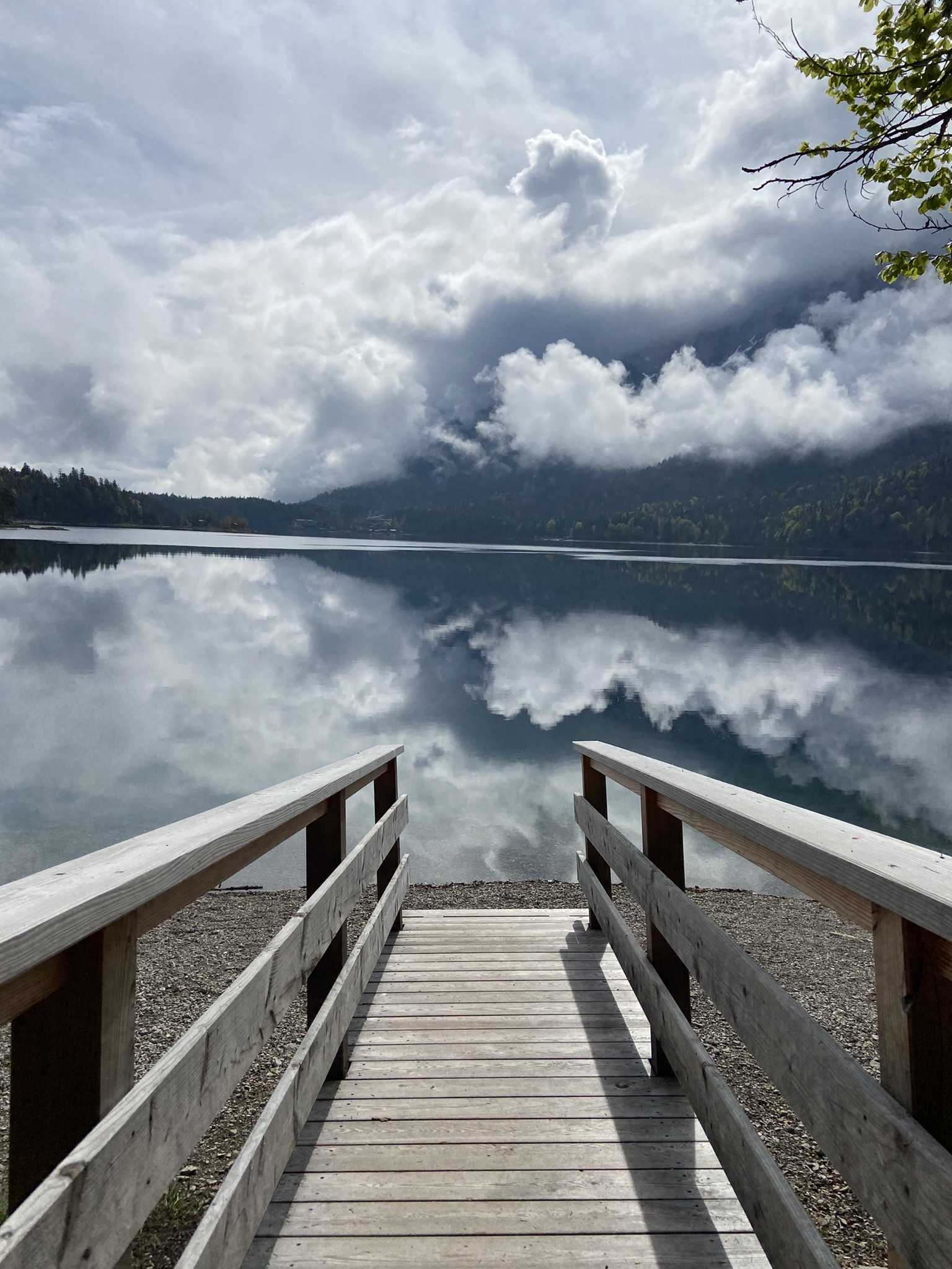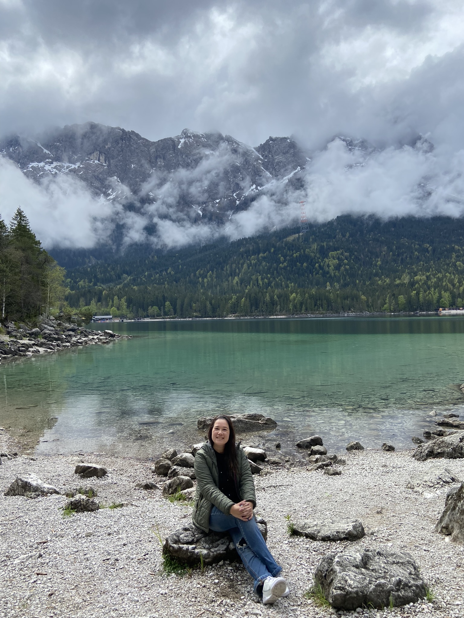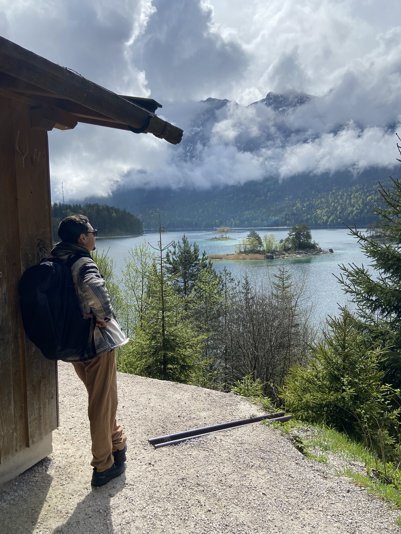O tempo melhorou enquanto caminhávamos pelo Eibsee, porém as câmeras do site ainda mostravam muita neblina lá em cima. Nós decidimos arriscar e subir, já que não tínhamos mais nada programado para esse dia.