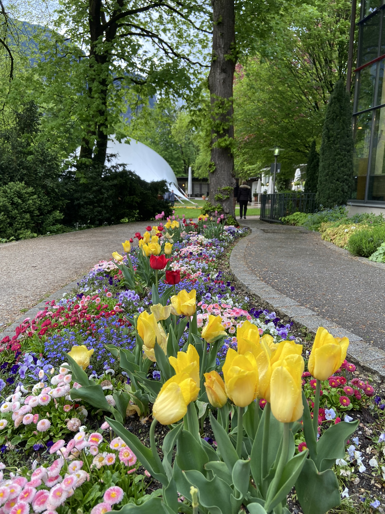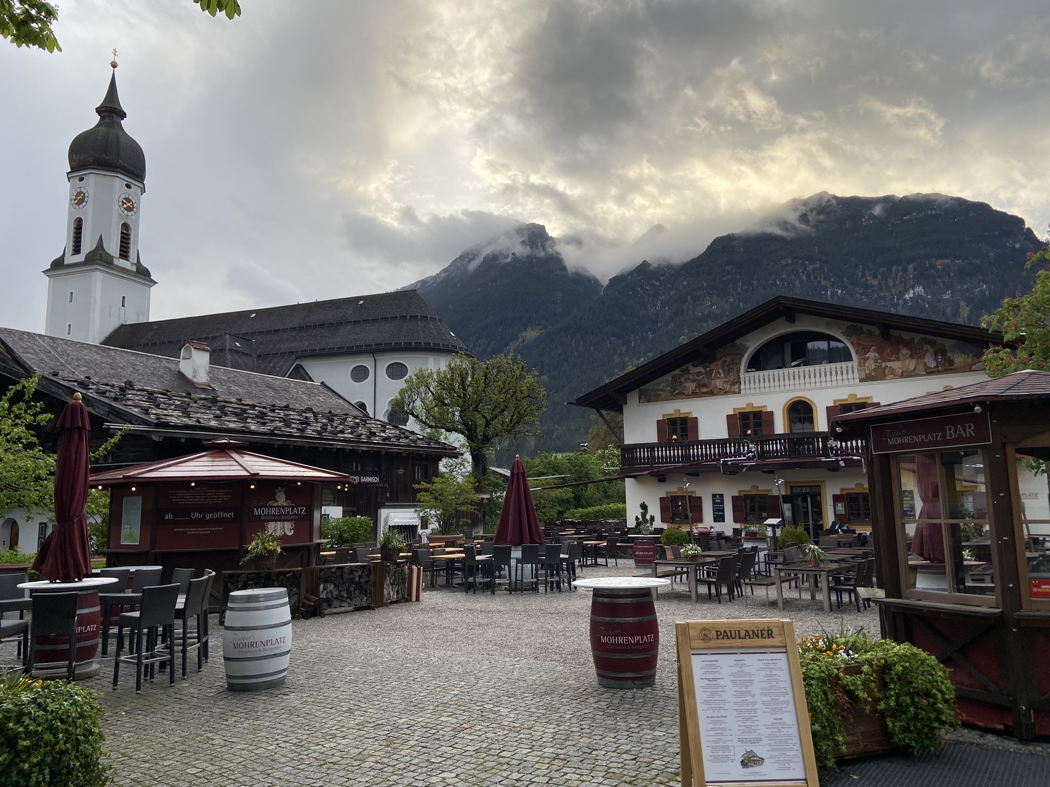 Voltamos para Garmisch-Partenkirchen para almoçar e passear pelo centro da cidade, que é muito bonito; também nos deparamos com música ao vivo dentro do Kurpark Garmisch.