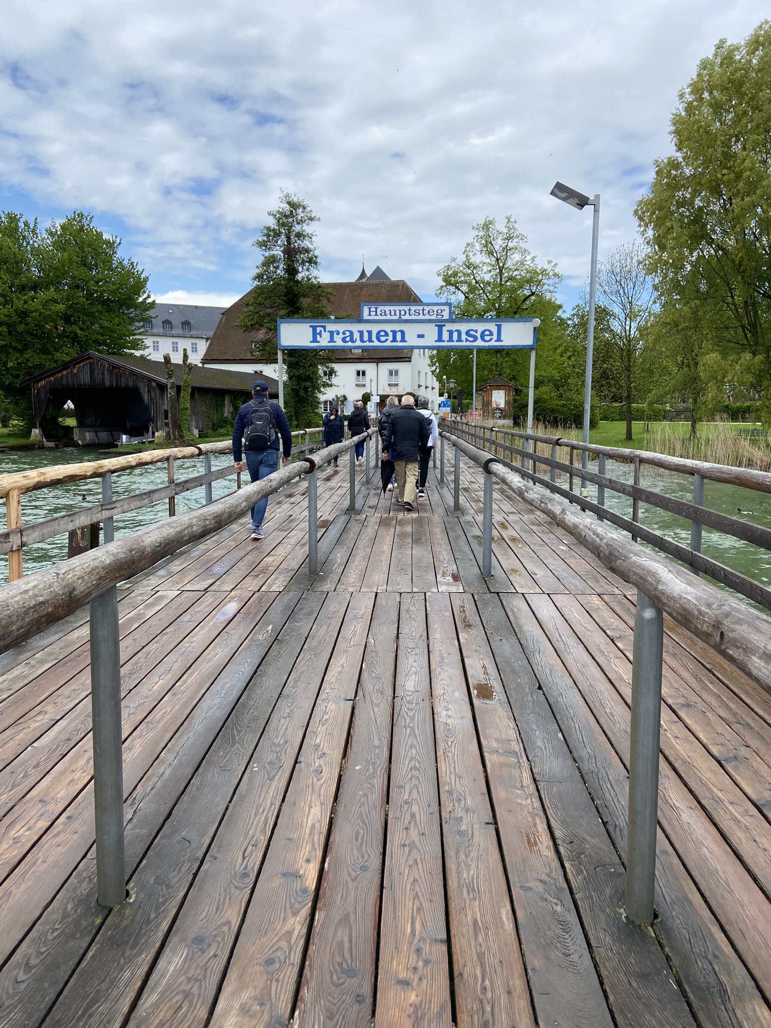 Percorremos 136km, e em 2 horas chegamos no Chiemsee Schifffahrt, ponto de partida dos passeios de barco. Existem alguns estacionamentos próximos ao deck, pagamos 3 euros pelo dia. Também é possível pegar o barco a partir de outro ponto chamado Chiemsee-Schifffahrt Ludwig Feßler – que parece ser o mais conhecido, entretanto não encontramos ele com facilidade no dia.