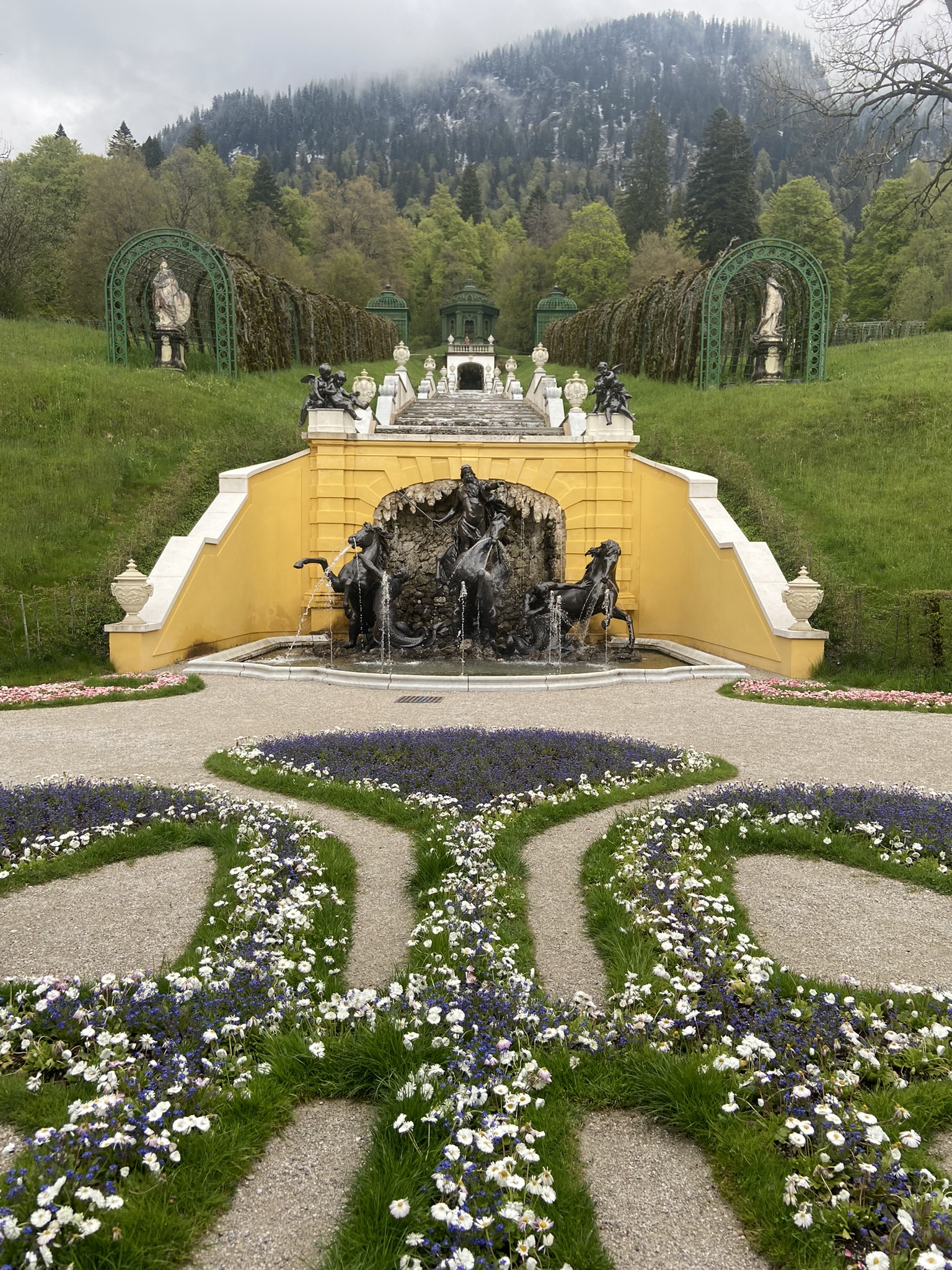 Paramos em Füssen para almoçar, a cidadezinha é muito bonita. Em seguida seguimos nossa viagem, até o último castelo do nosso roteiro, o Castelo Linderhof – foram 43 km rodados em 1 hora, por uma estradinha cheia de paisagens lindas, cruzando a fronteira com a Áustria.