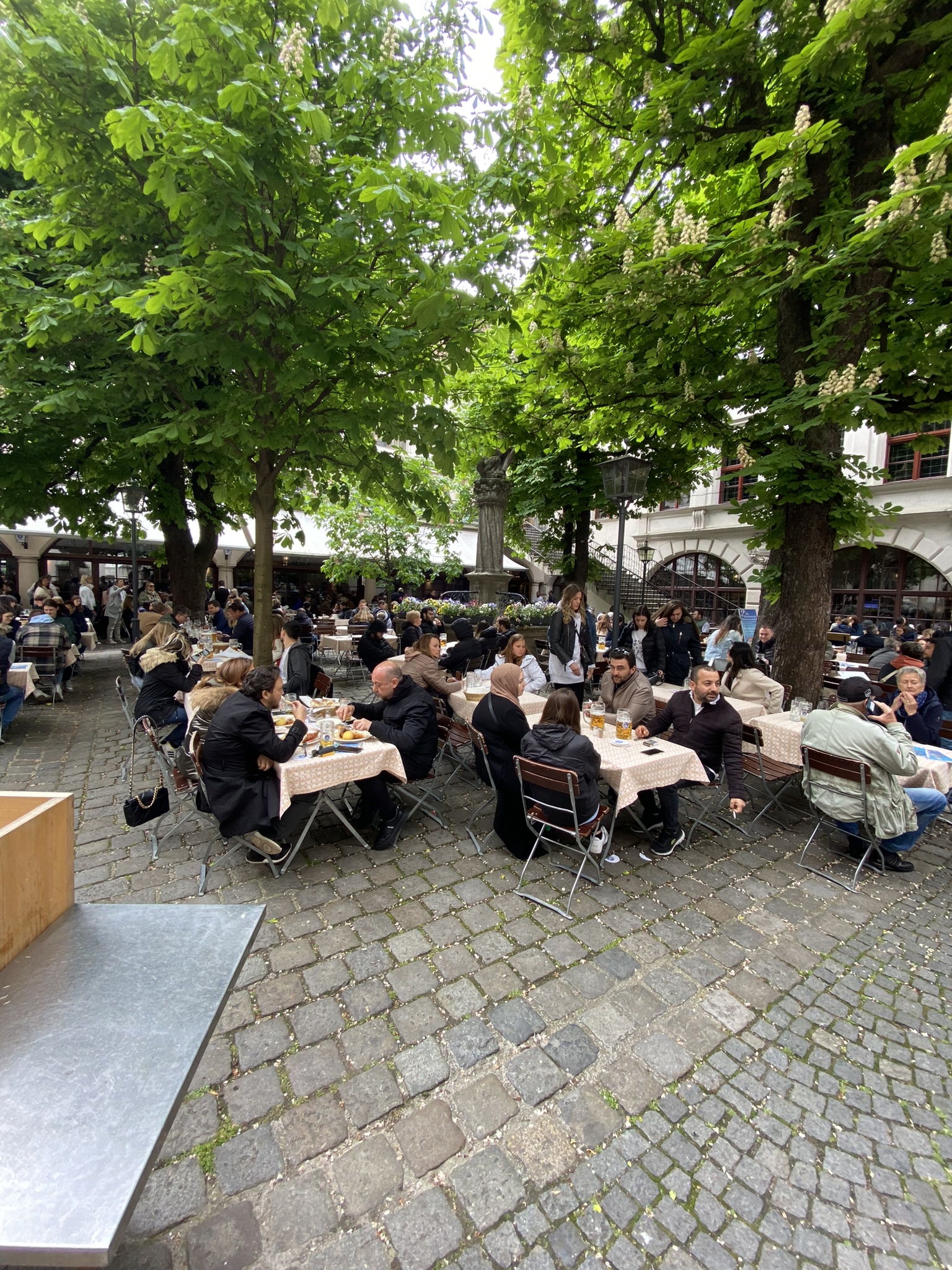 Voltamos para o Viktualienmarkt para tomar uma cerveja no biergarten, como uma despedida dessa viagem tão diversa e incrível que fizemos.