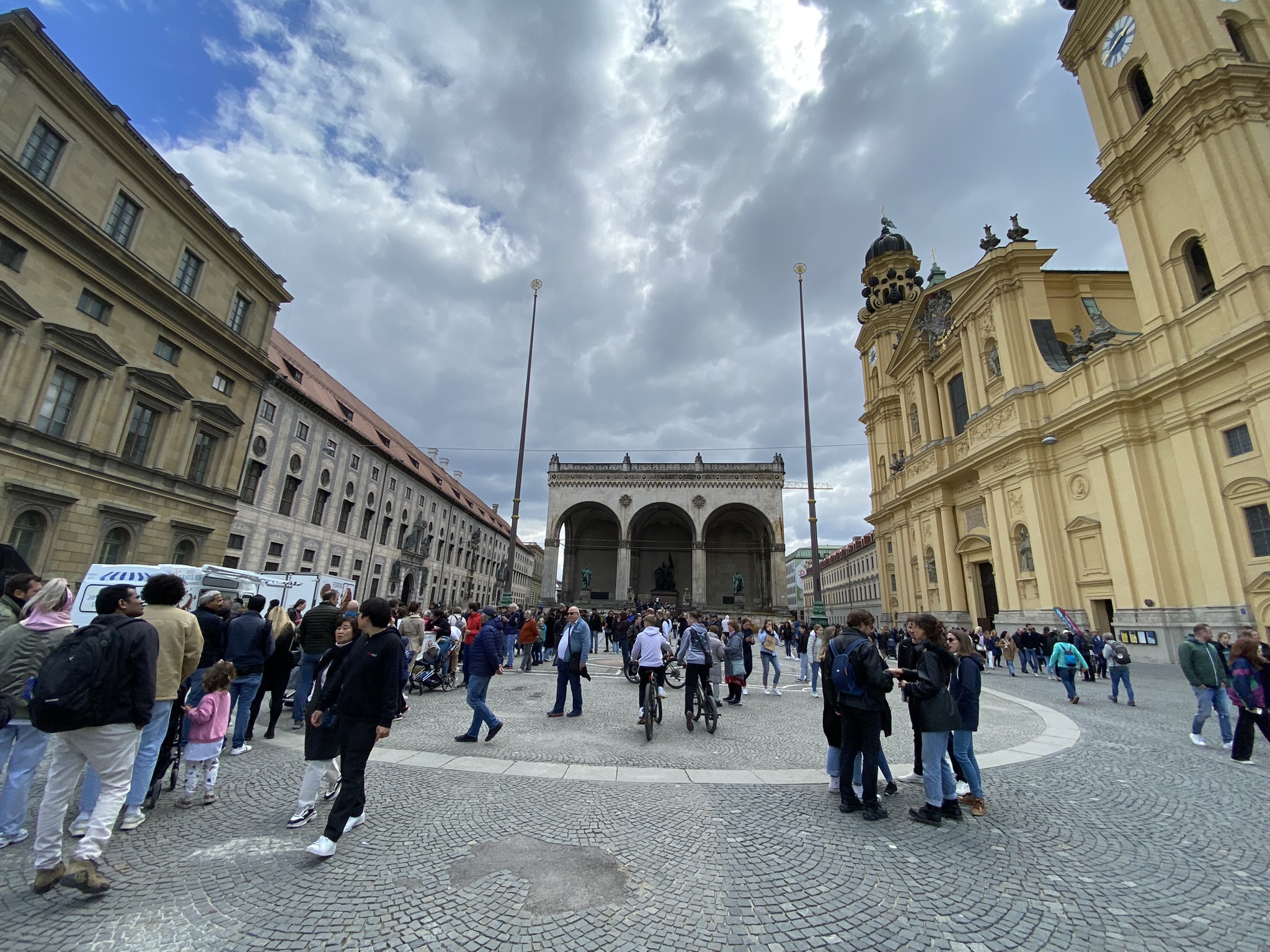O ponto de encontro era na Marienplatz, na estátua de Mariensaule. Ficamos por ali pois meio-dia começava o evento na Torre do Relógio. Seguimos nossa caminhada, e ao longo de todo o percurso o guia trazia o contexto histórico de Munique, e explicações sobre a importância e relevância de cada lugar. Passamos pela Frauenkirche, a catedral de Munique; caminhamos até a Odeonplatz onde aprendemos sobre o surgimento do partido político nazista. Na Max Joseph Platz passamos pela antiga residência do Rei Luís II e pelo Teatro Nacional. Terminamos na frente da Hofbrauhaus, depois de entender a importância da cerveja para a região da Bavaria, e sua origem.