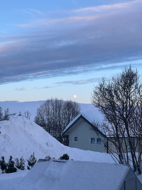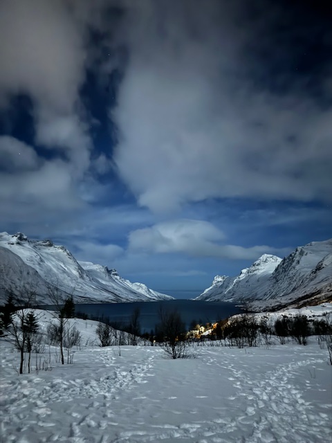 Nosso objetivo era tentar ver a Aurora sozinhos, já que estávamos de carro e o plano era pagar pelo Tour com guia somente 1 noite. Durante o Free Walking Tour, nós conversamos com o dono da loja de souvenir “Intrepid Arctic Gift Souvernirs & Tours”, e além de ele dizer que naquela noite as condições de visibilidade estariam ótimas, também nos apontou um lugar onde é possível observar a Aurora com uma paisagem muito bonita de fundo: Ersfjord view point. Esse foi o site que ele usou para nos mostrar as condições climáticas: www.yr.no/en. Demos muita sorte, e apesar da lua cheia, conseguimos ver a Aurora na nossa segunda noite em Tromso.