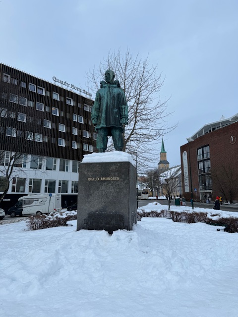 Passamos pelos principais pontos no centro de Tromso, e pudemos conhecer um pouco mais sobre a história e a importância da cidade. Também assistimos um vídeo muito legal sobre a região em um cinema dentro de uma das lojinhas de souvenir. O tour durou aproximadamente 2 horas e meia, e terminamos na praça onde está localizada a estátua de Roald Amundsen.