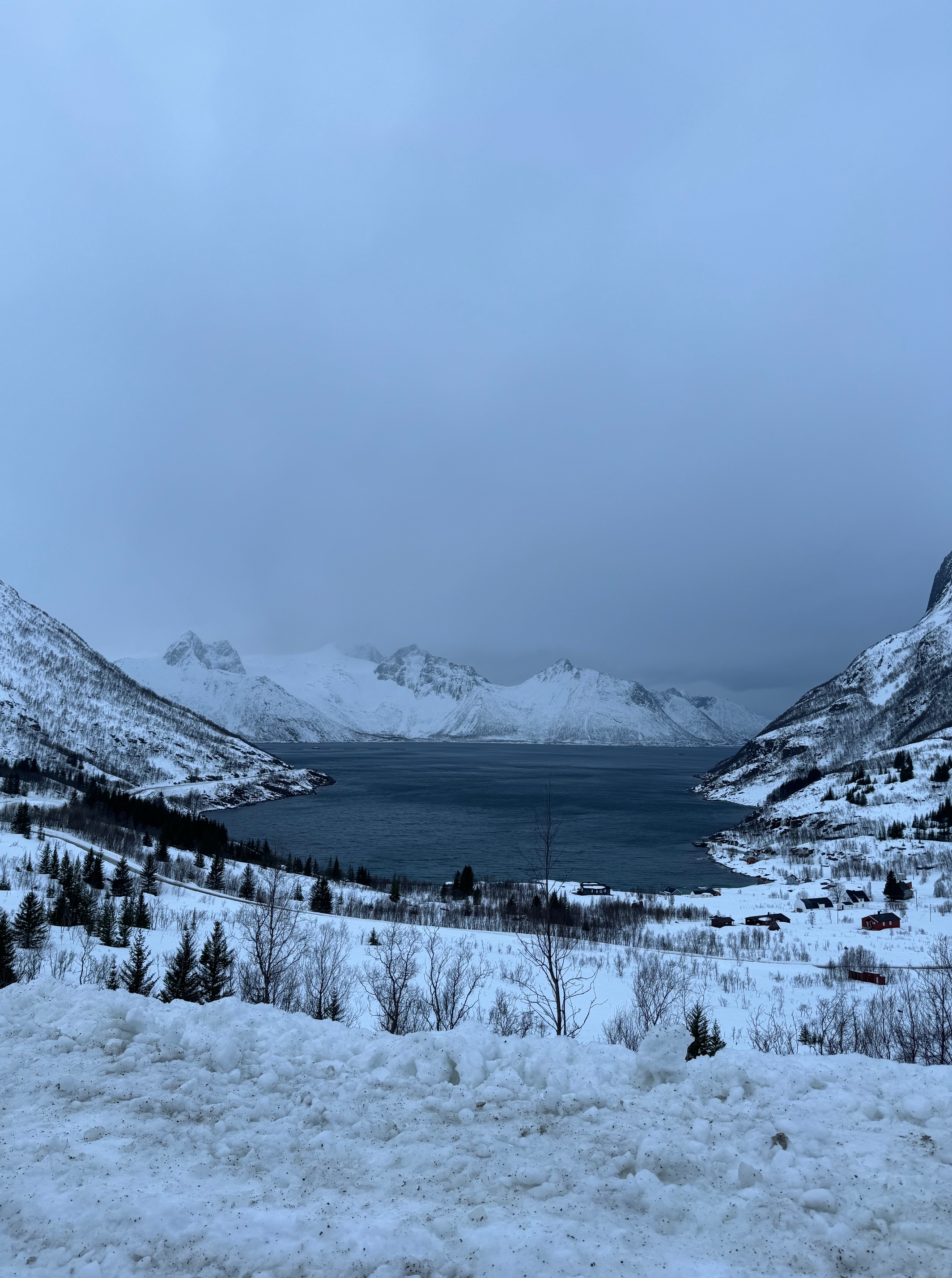 Nós chegamos em Senja a partir de Sommaroy. No verao este percurso pode ser feito de ferry, mas viajamos no inverno e a única possibilidade foi usar as estradas internas. Apesar de mais longa, a viagem foi incrível, com paisagens de tirar o folego.