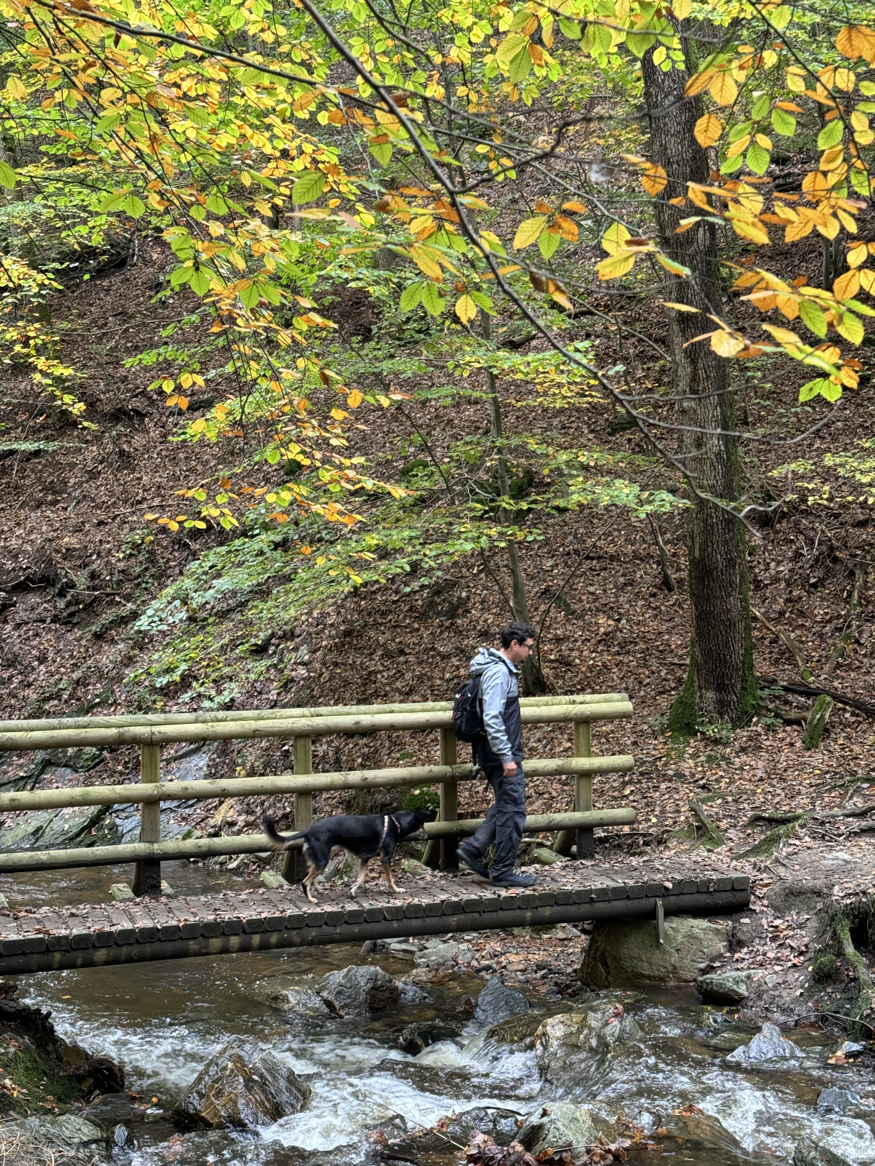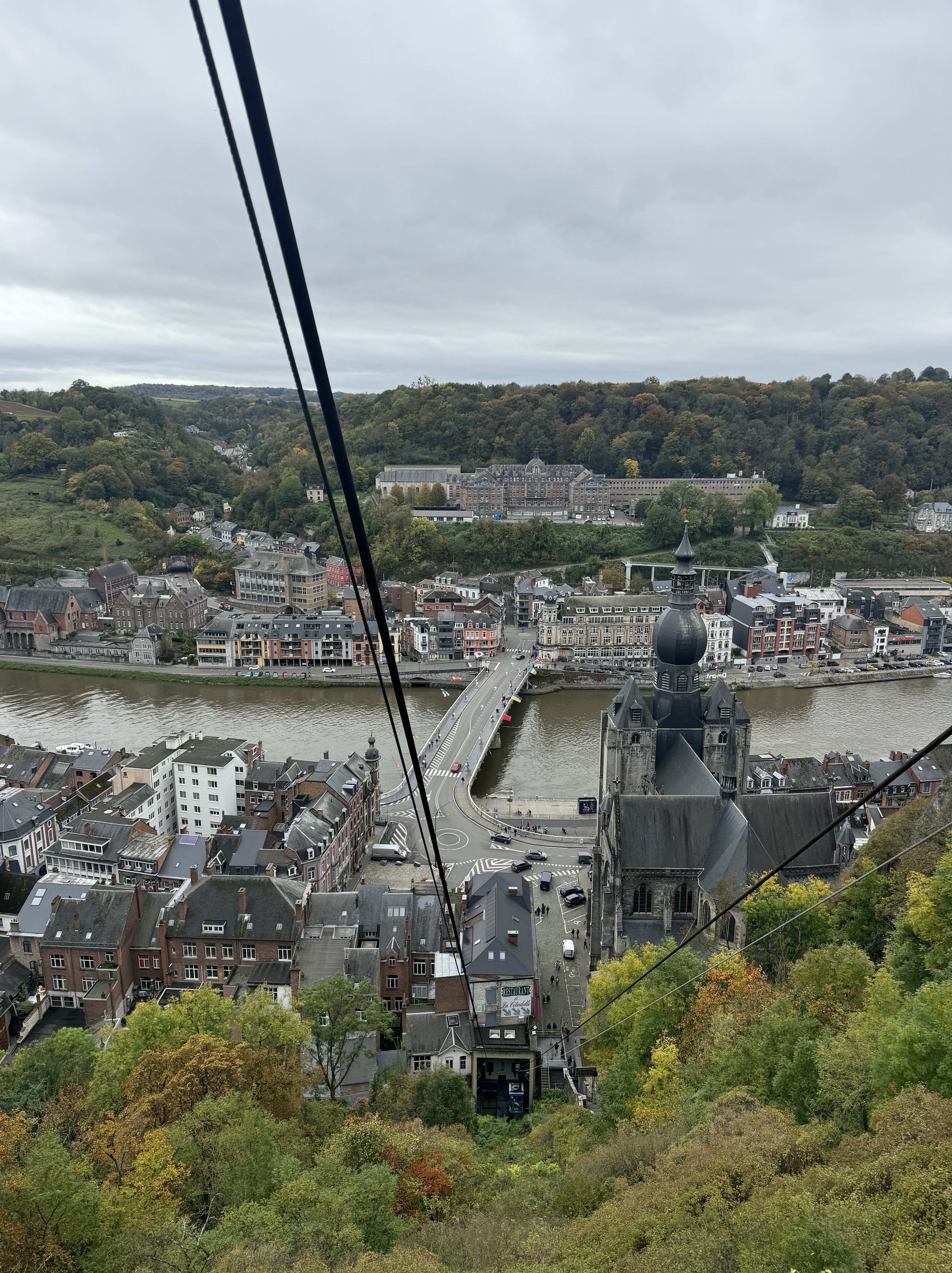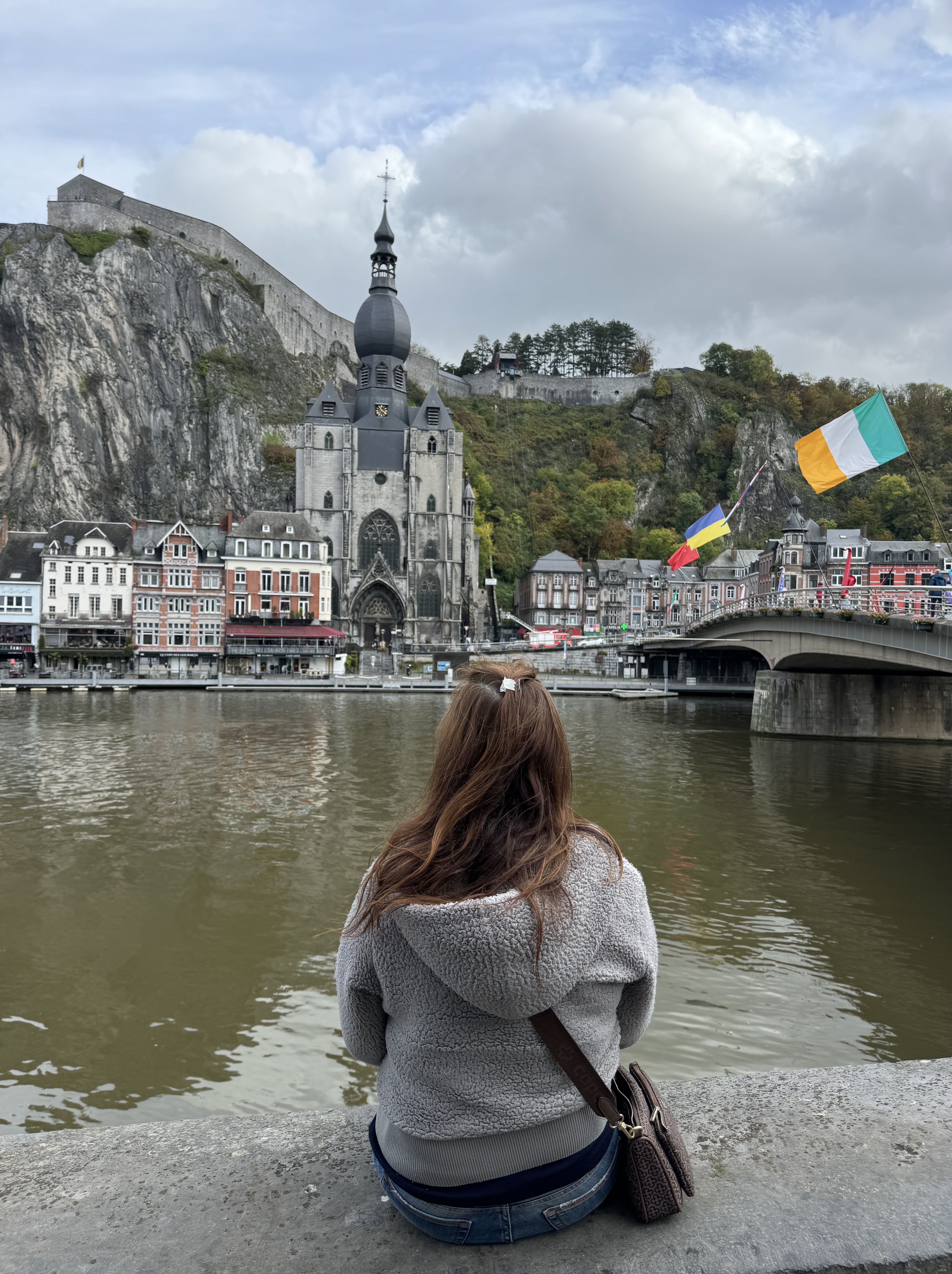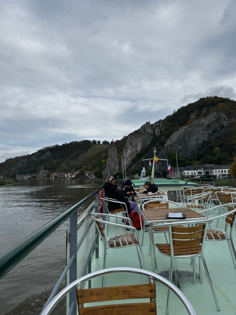 Visitamos a cidade no Sábado, e por ser Outono nós conseguimos evitar as multidões. No retorno para a Alemanha no Domingo, nós resolvemos fazer uma parada em uma trilha com cachoeira a 1 hora e meia de Dinant – basta procurar no Google por Cascade de la Chaudière, tem estacionamento de graça no início da trilha, mas com vagas limitadas. Nós chegamos por volta das 11:00 e já estava lotado, tivemos que estacionar na beira da estrada. A trilha é muito bem sinalizada e de dificuldade fácil/média: apesar de bem estruturada, precisa atravessar o rio pela água em alguns lugares, e tem uma subida íngreme que leva até o topo da montanha. Existem 3 percursos diferentes – optamos pelo trecho de 2 horas, trilha amarela.