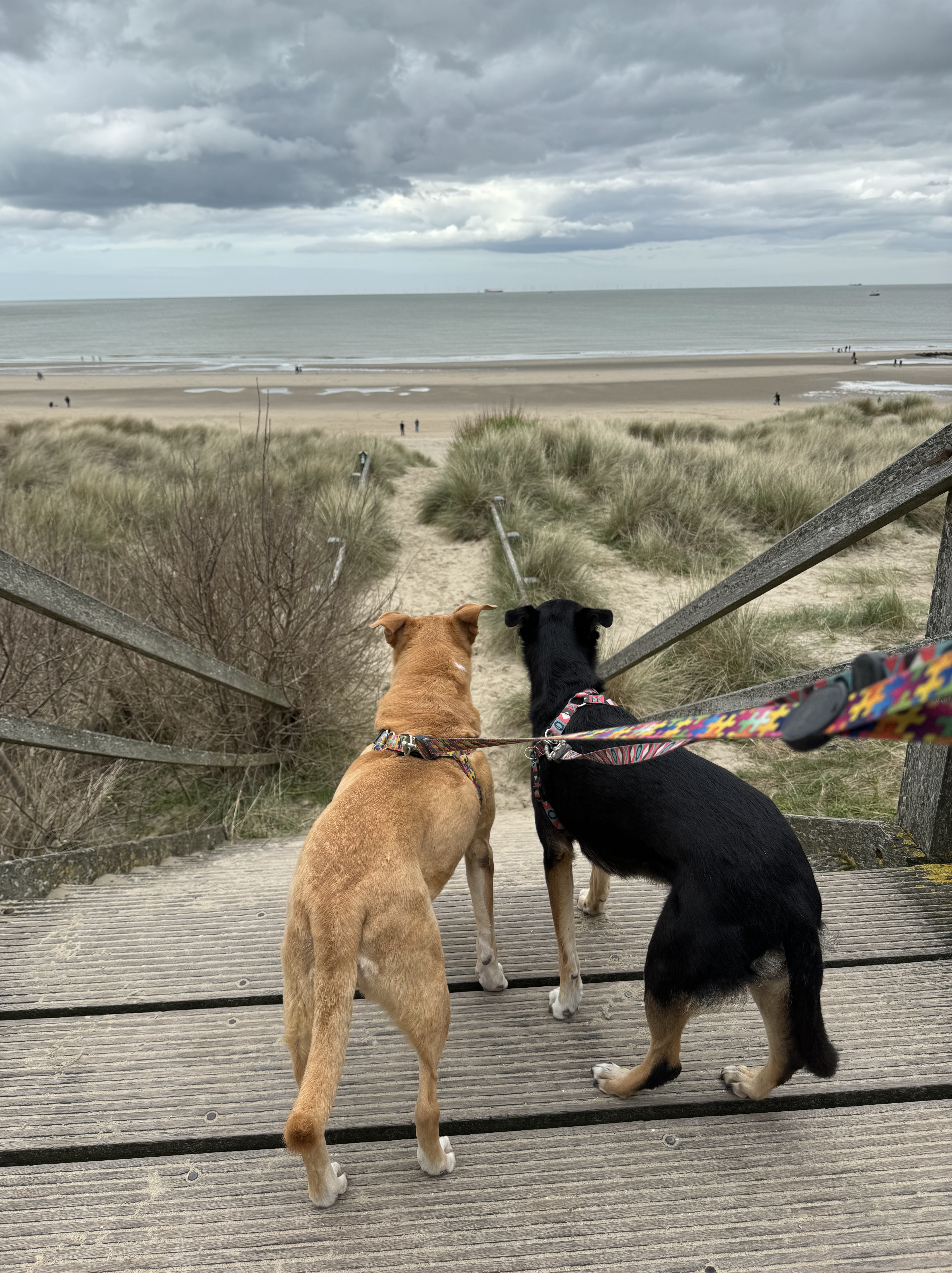 Bruges fica bem ao Norte da Bélgica, e decidimos esticar até a praia. Foram 30 minutos de carro até Blankenberge Beach, onde tem um calçadão e um píer. Existem placas informando que é proibido acessar a areia com cachorro, mas como vimos muita gente com doguinhos brincando na areia, passamos o resto da nossa tarde caminhando com elas por lá.
