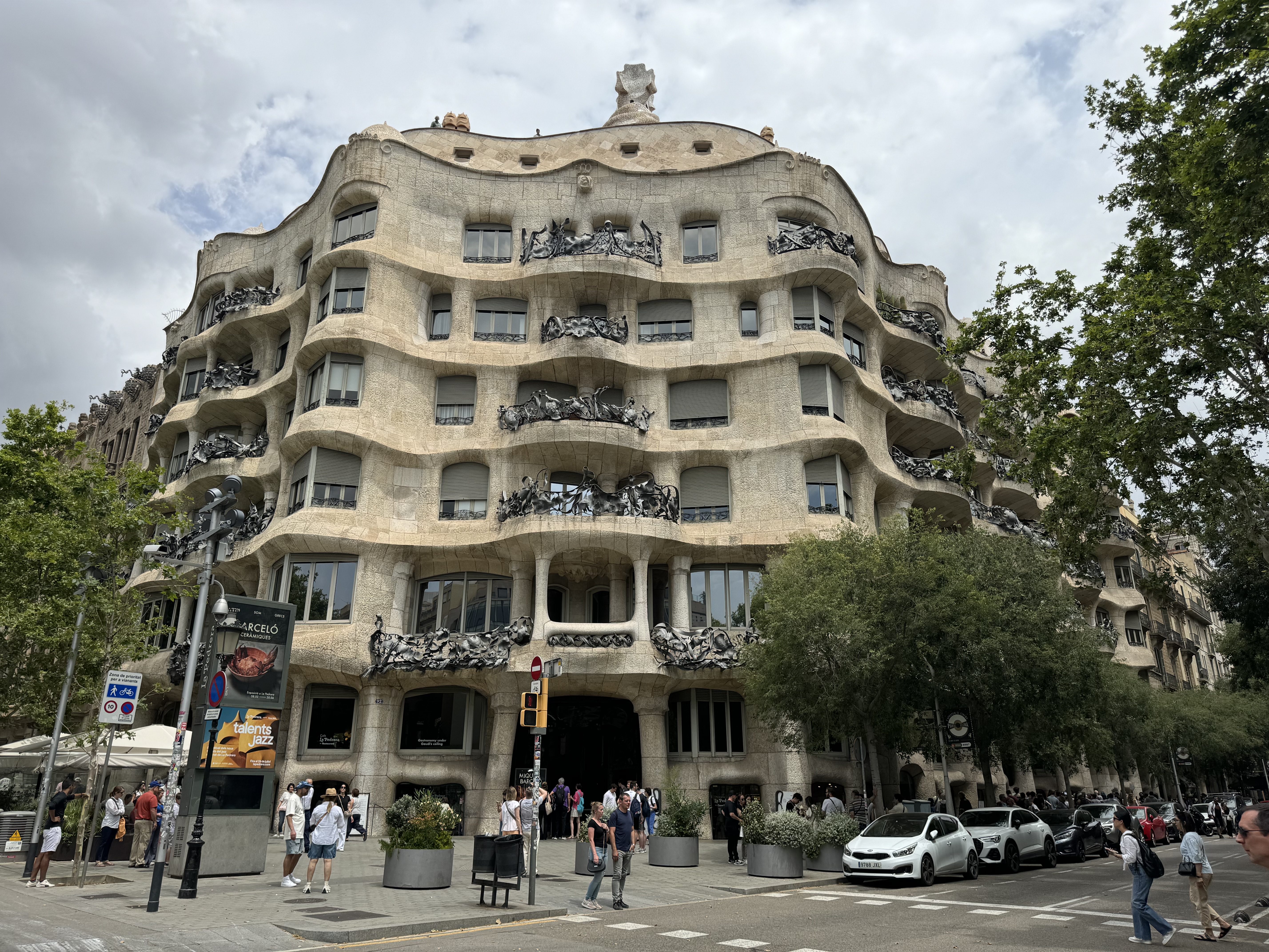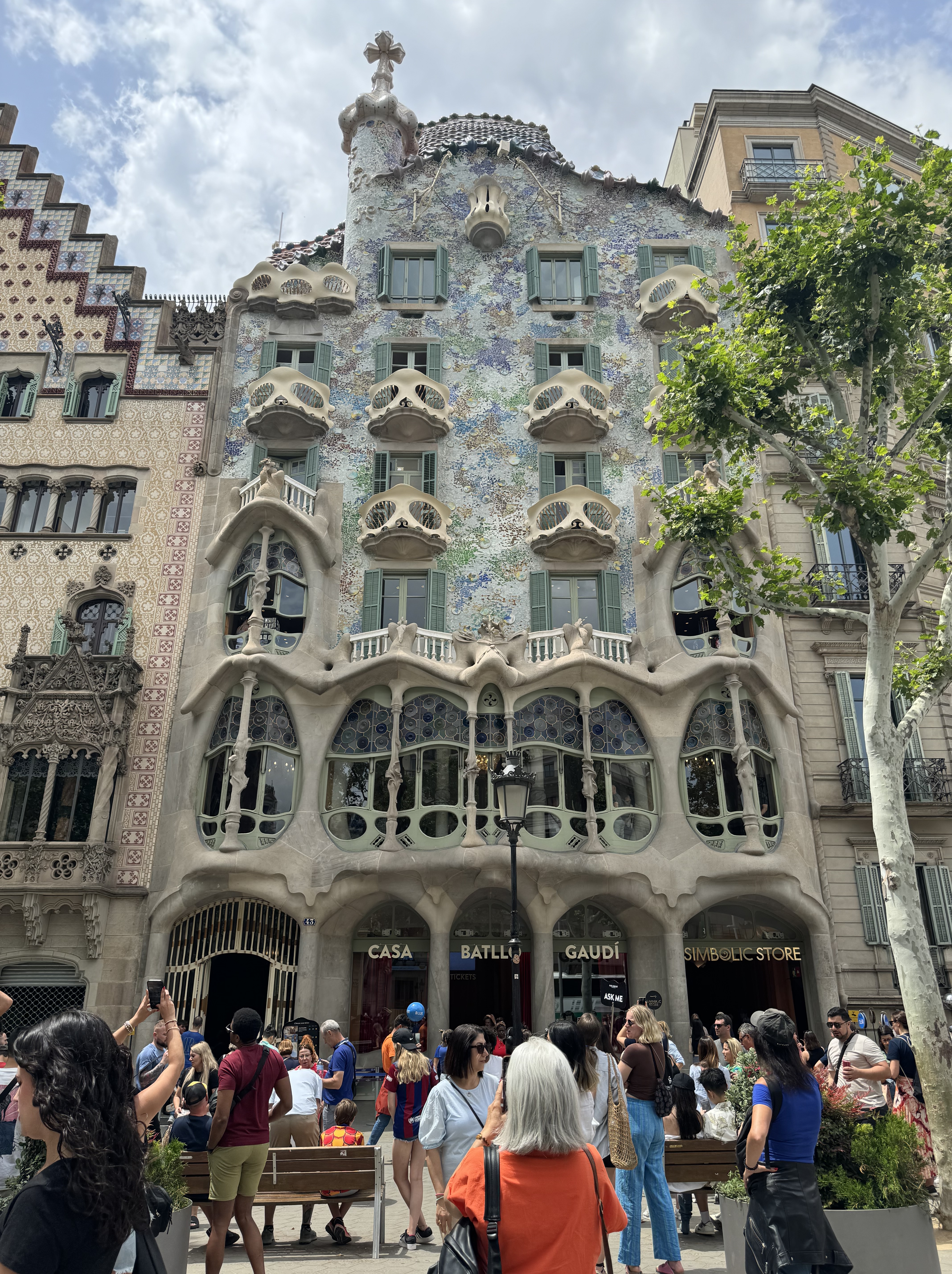 Seguimos a pé praticamente em linha reta, até a Casa Milà (site oficial). O processo de construção de mais essa obra de Gaudí foi bem polemico na época, e inicialmente era utilizada como residência. Depois de anos de abandono, passou a ser Patrimônio Mundial da Unesco. Dali nós seguimos pela Passeig de Gràcia, uma das principais e mais famosas avenidas da cidade, e chegamos na Casa Batlló (site oficial), outra obra de Gaudí e que também era utilizada como residência no passado. Ao final da Passeig de Gràcia, está a Plaza de Catalunya, onde pudemos apreciar uma taca de vinho, acompanhada de comidas locais em uma feira que acontecia ali.