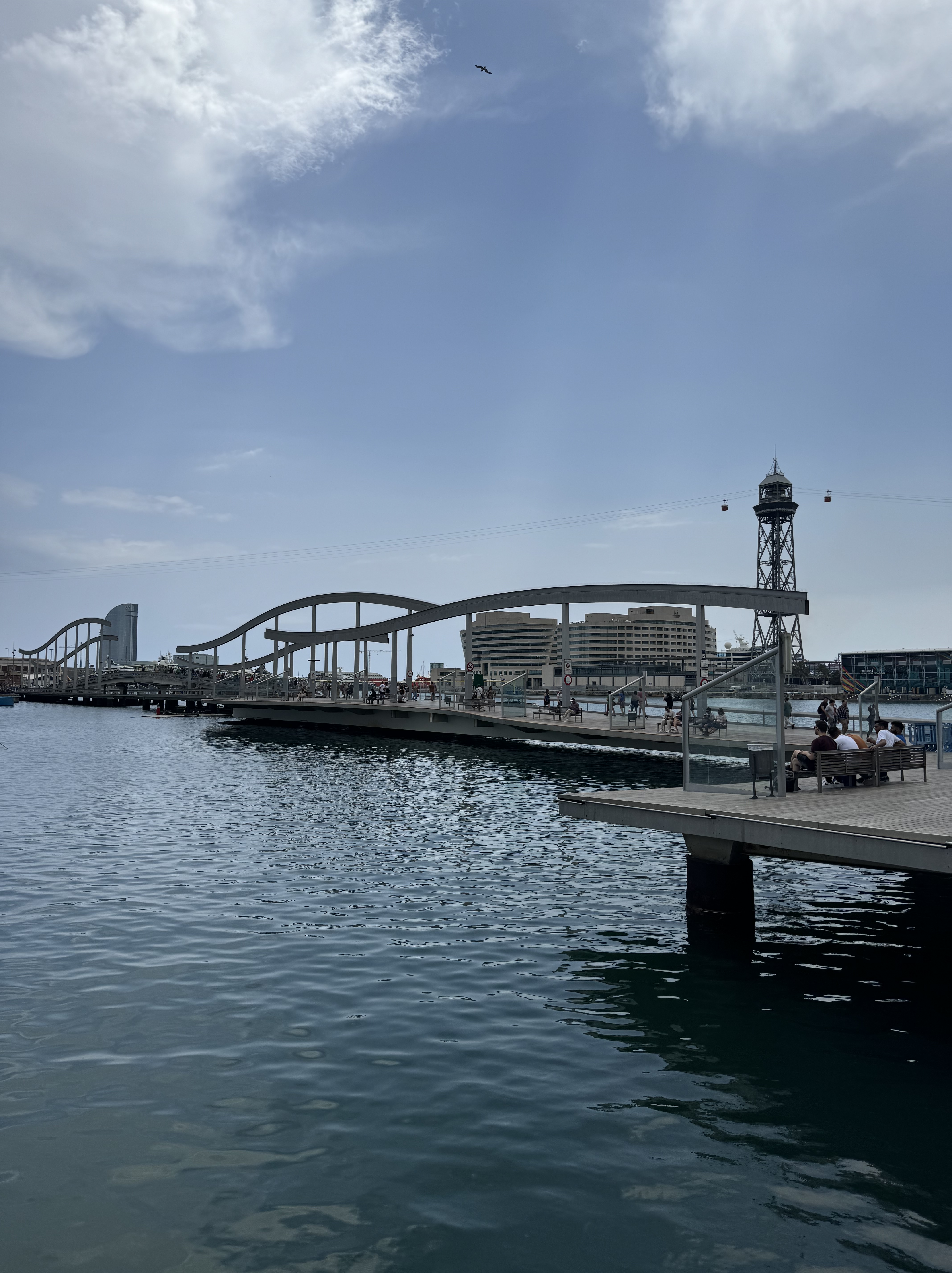 Seguimos em direção ao mar, passamos pelo Monument a Colom, onde fica uma estátua de Cristóvão Colombo, e caminhamos pela Rambla de Mar: uma ponte de acesso ao Port Vell, área do porto antigo, e a um centro comercial (shopping) que fica em uma “ilha”, rodeado de água.