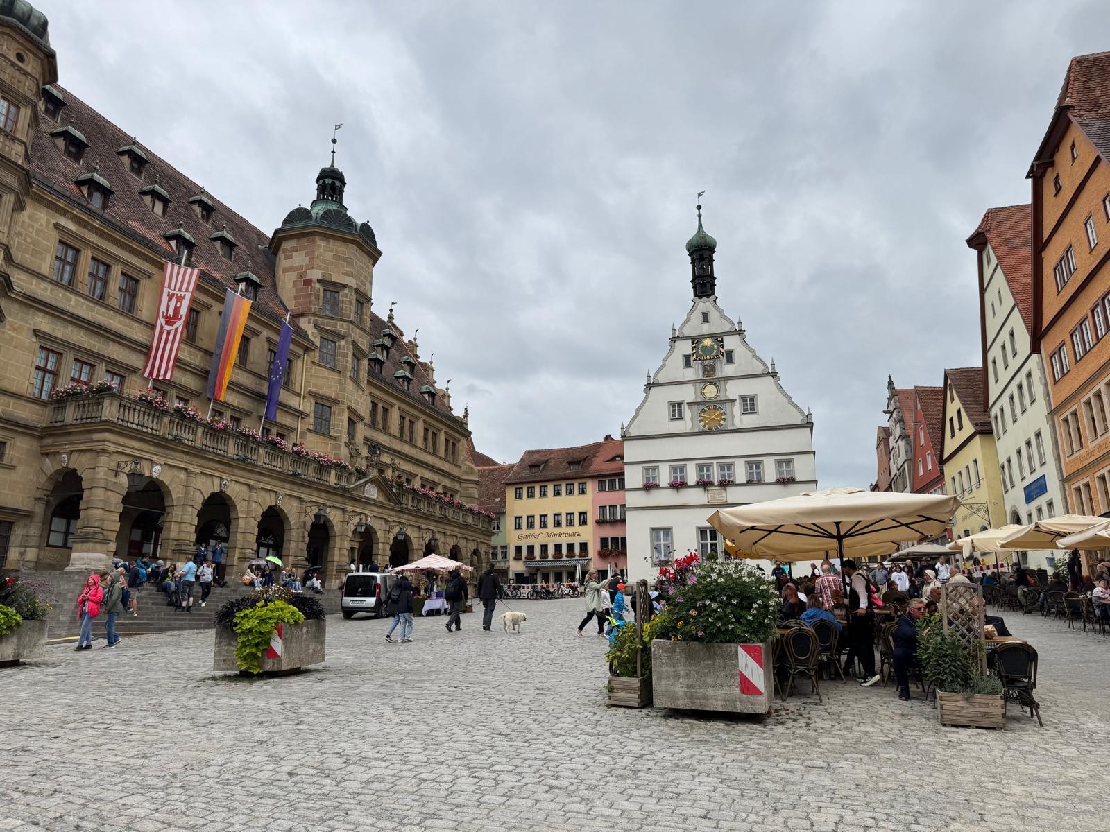 O centro da vida em Rothenburg é a Marktplatz, cercada por edifícios históricos e com muito movimento. É o lugar perfeito para uma pausa para um café, e para observar o movimento da cidade. Mas nenhuma visita a Rothenburg estaria completa sem uma parada no Plönlein, talvez a paisagem mais fotografada de toda a Alemanha. A imagem da pequena praça com a fonte, as casas tortas e a torre ao fundo é inconfundível.