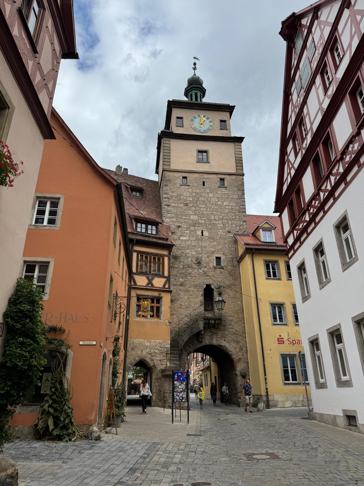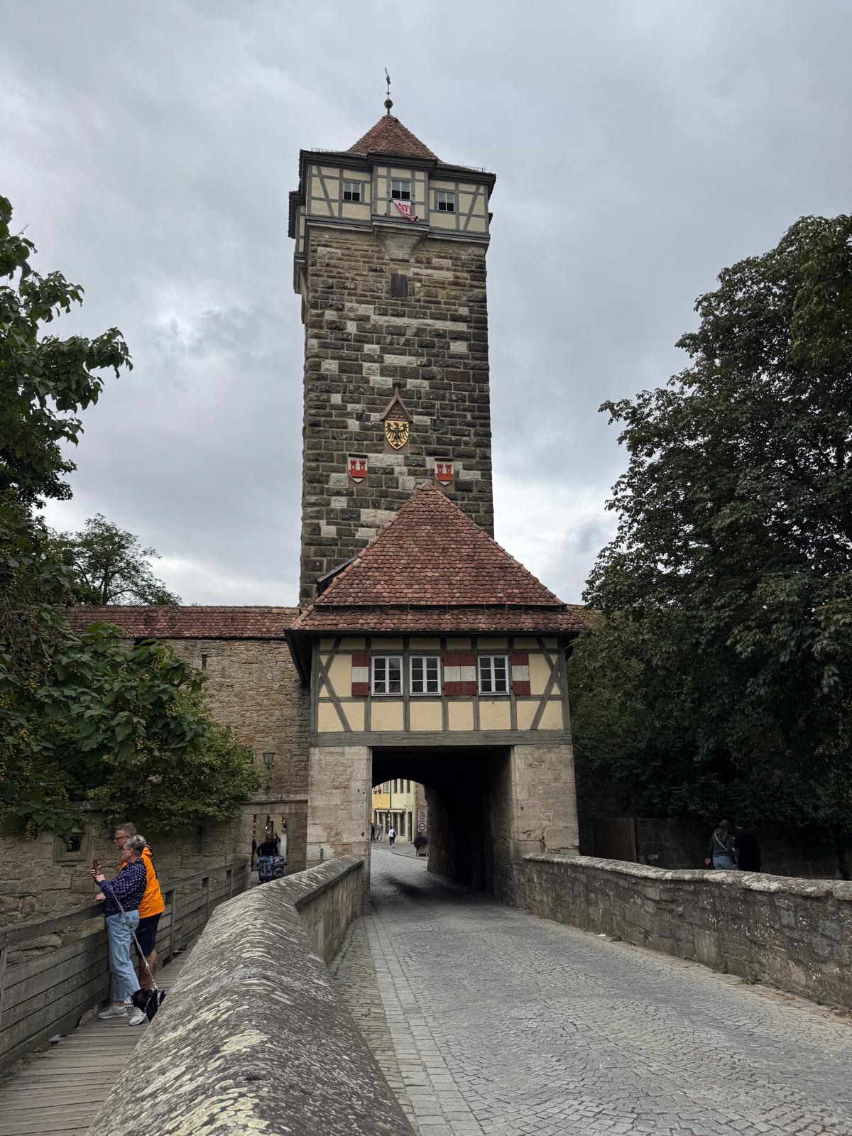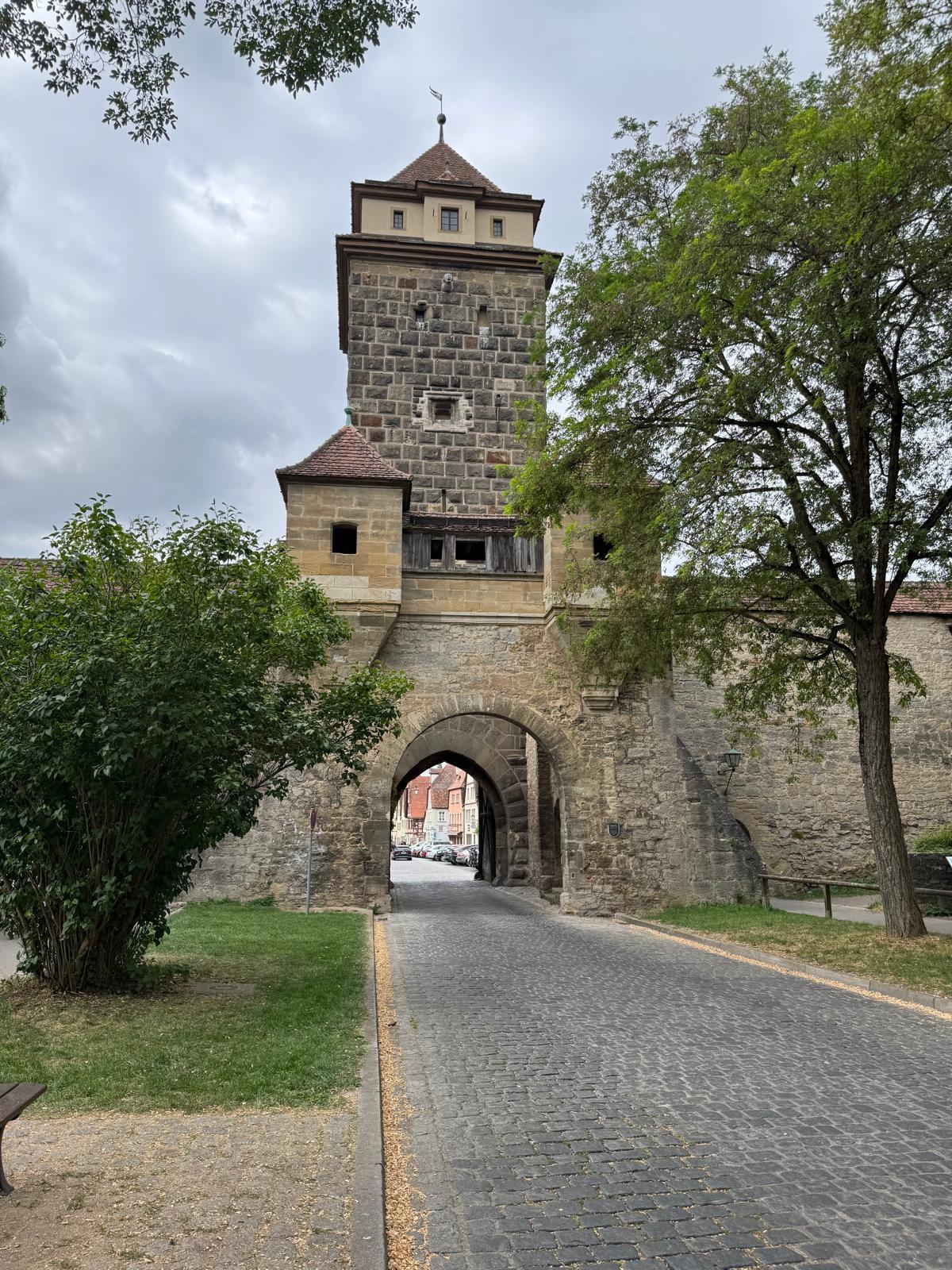 A cidade é toda cercada por uma muralha, e pode ser acessada através de vários portões. Uma das opções, é iniciar seu roteiro a partir do Gallows Gate (Galgentor). Próximo desse portão, é possível acessar a muralha da cidade Stadtmauer Rothenburg – caminhar por ela oferece vistas panorâmicas e a oportunidade de vivenciar a rotina daqueles que vigiavam a cidade.