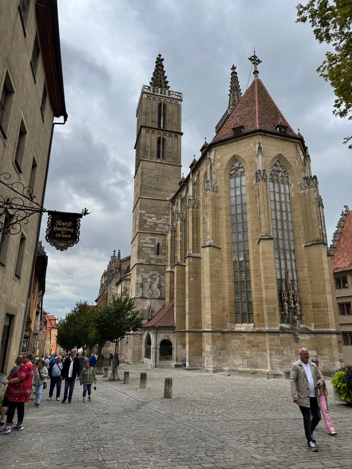 Adentrando o centro histórico, está a St. Jakobskirche (Igreja de São Tiago). Seguindo o estilo gótico, e muito imponente, teve sua construção finalizada em 1485. Se descer a rua, você vai chegar no Burggarten, um parque público que antigamente abrigava o castelo da cidade; dali você também pode apreciar uma vista espetacular sobre o vale do rio Tauber.