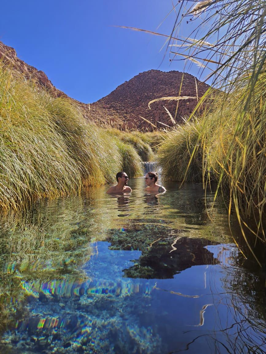 Para relaxar após a aventura nos gêiseres, as Termas de Puritama são o destino perfeito. Trata-se de uma sequência de oito piscinas termais naturais, com águas que variam entre 28°C e 30°C, localizadas no fundo de um cânion. A infraestrutura é bem cuidada, permitindo um banho revitalizante em meio à aridez do deserto.
